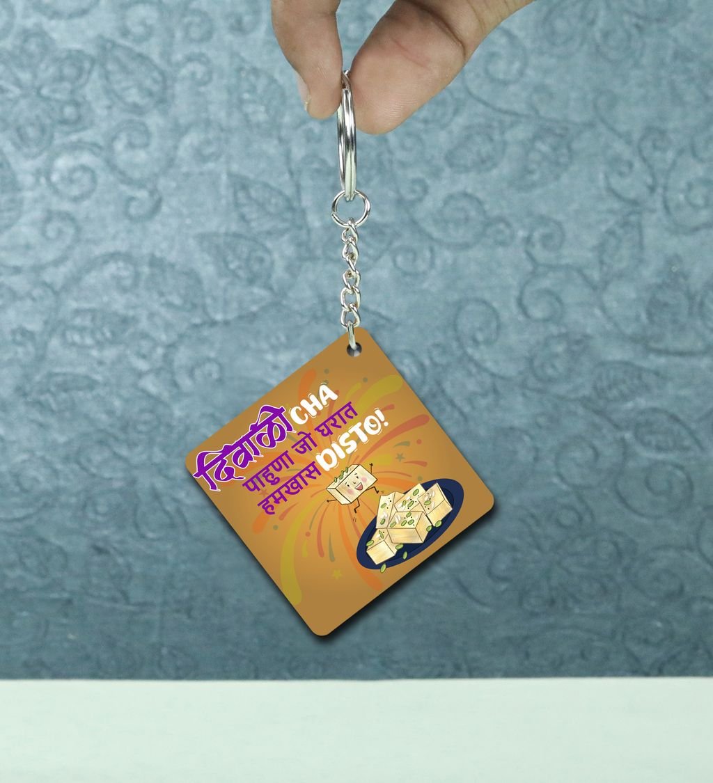Celebrate Sparkle and Shine Diwali Slogan Printed Square Keychain