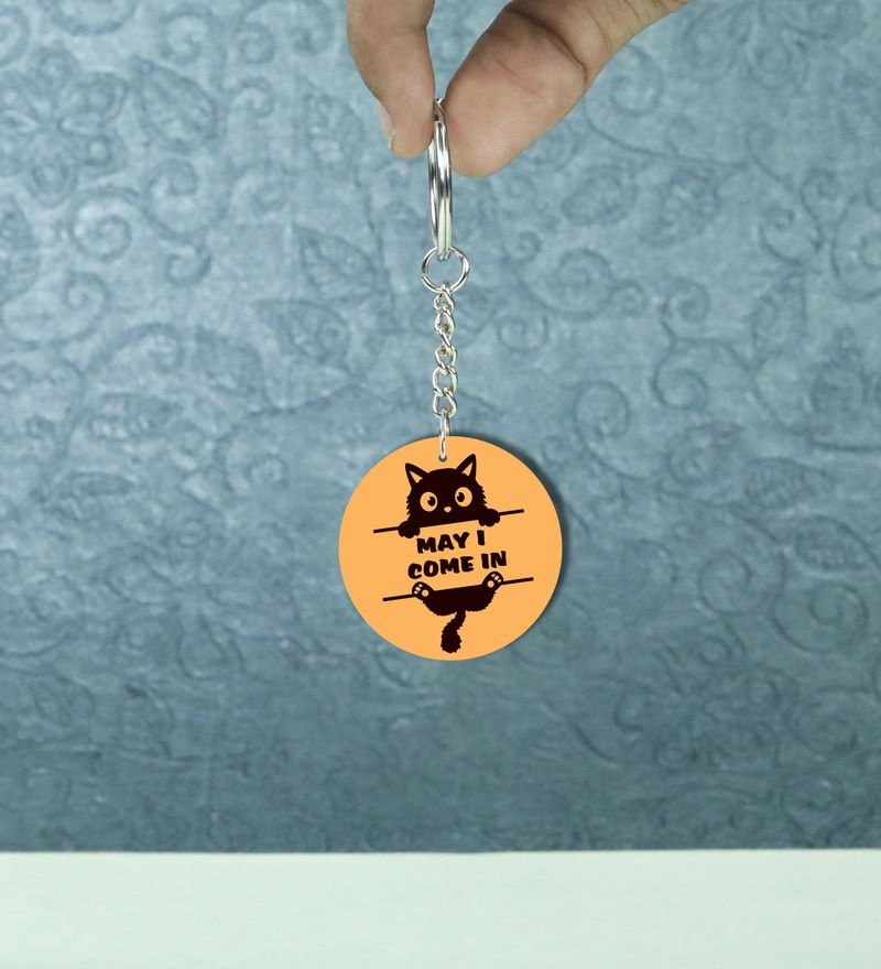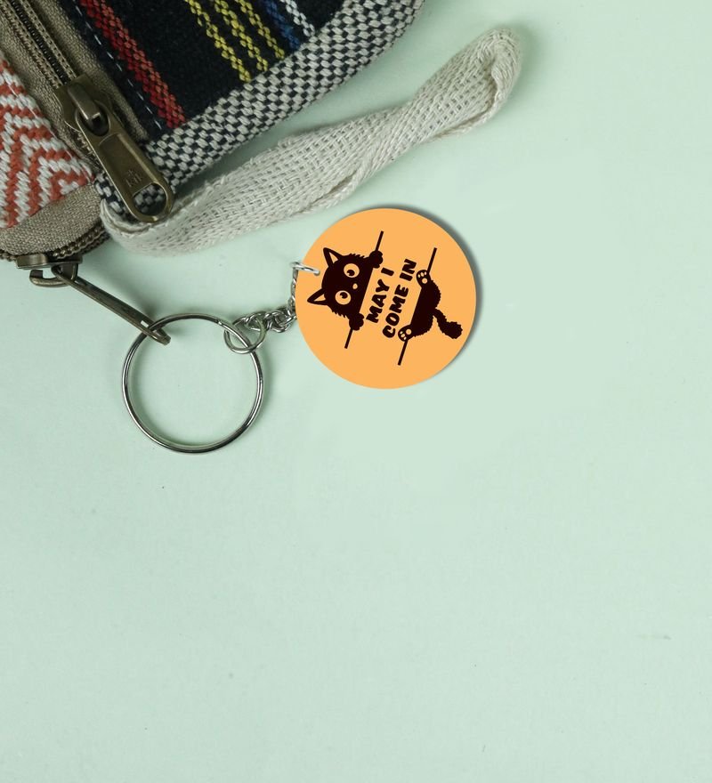 Charming Kitty Saying May I Come In Printed Round Keychain Pack of 2