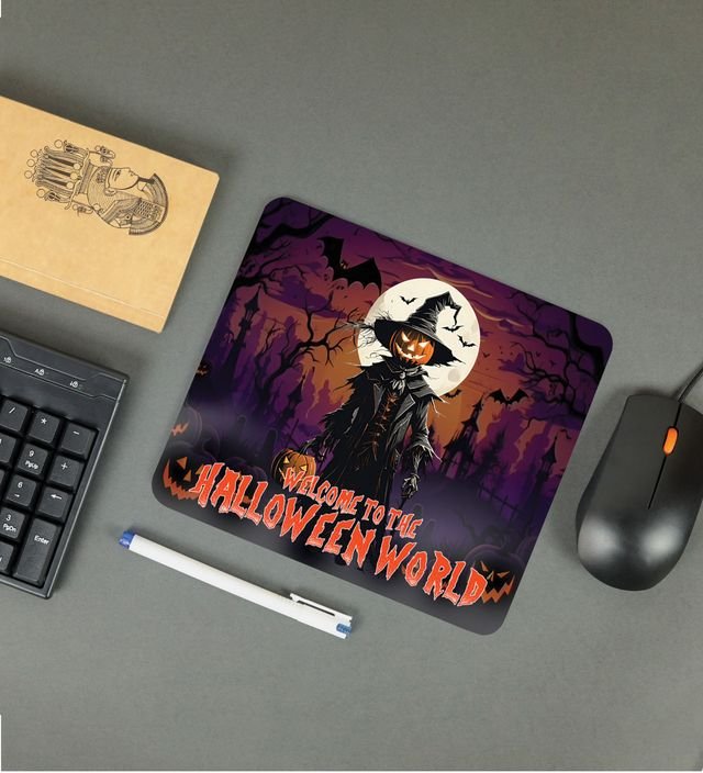Unleash the ultimate horror vibe at your desk with this Halloween-themed printed mousepad. Featuring a terrifying horned demon emerging through blood-splattered text, it's the perfect accessory for horror lovers, gamers, and Halloween enthusiasts.