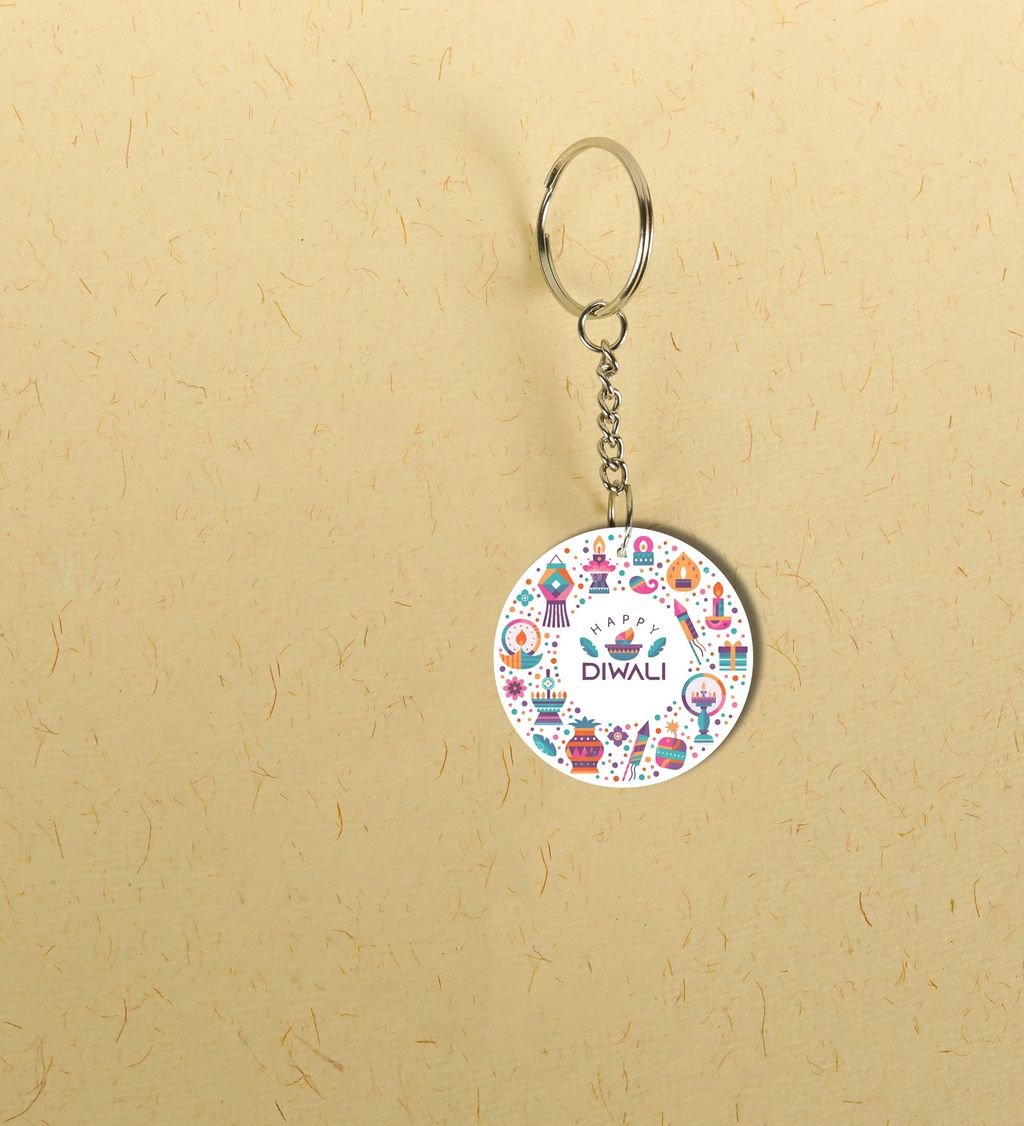 Celebrate the festival of lights with these vibrant Diwali Printed Round Keychains Pack of 2. Made with durable material and high-quality print, these keychains are perfect for carrying keys, gifting, or adding a festive touch to your accessories. Each pack includes two beautifully printed round keychains that showcase the spirit of Diwali with glowing lamps, fireworks, and colorful festive themes. Lightweight, stylish, and easy to carry, these keychains make an ideal choice for personal use or as return gifts during celebrations.