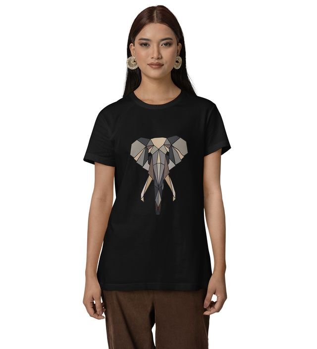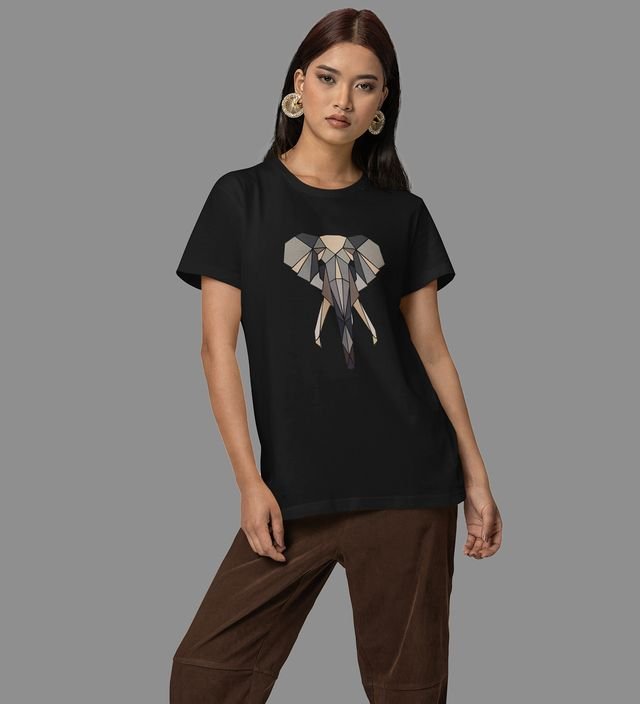 Elephant Elegance in Angles: Graphic Printed Black T-Shirt