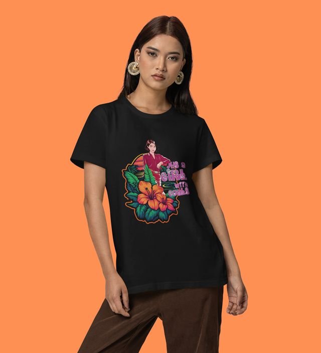 Floral Focus: Just a Girl with Goals Graphic Printed Black T-Shirt