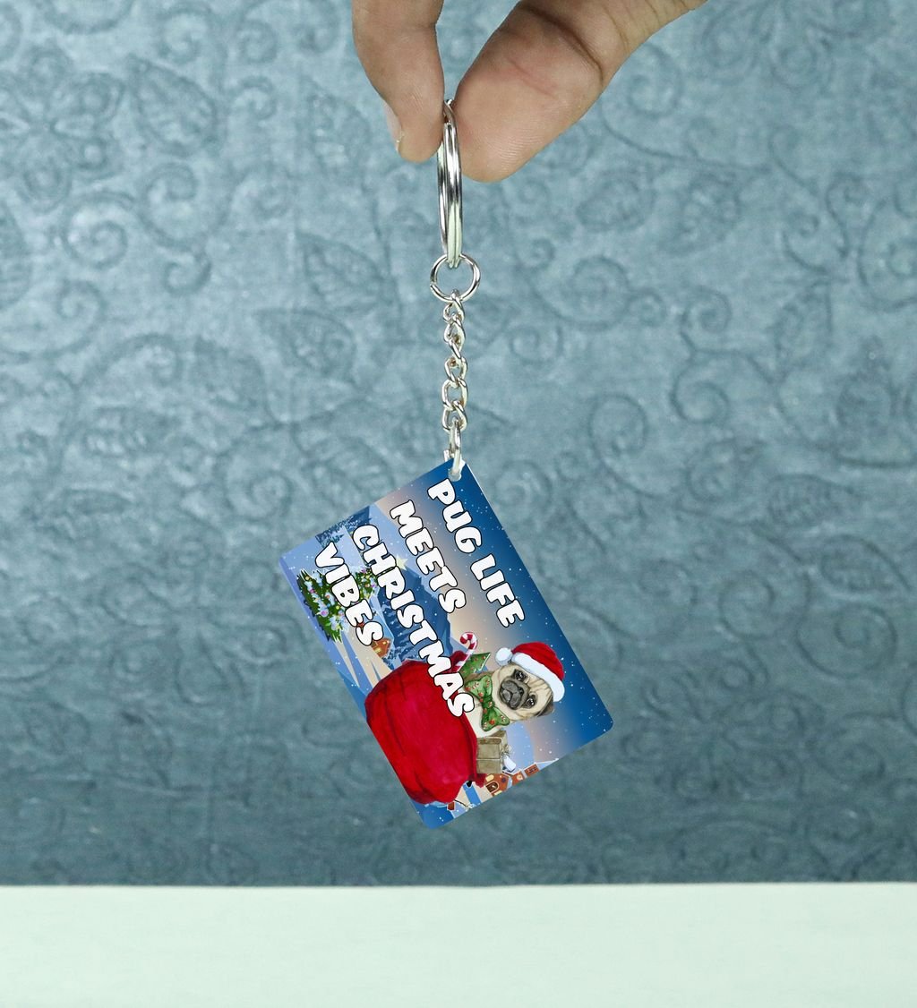 Holiday Hugs and Puggy Mugs Printed Keychain Pack of 2