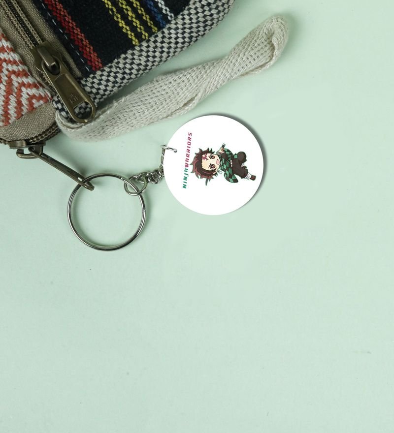 Illustrated Anime Boy With Sword Skill Printed Round Keychain Pack of 2