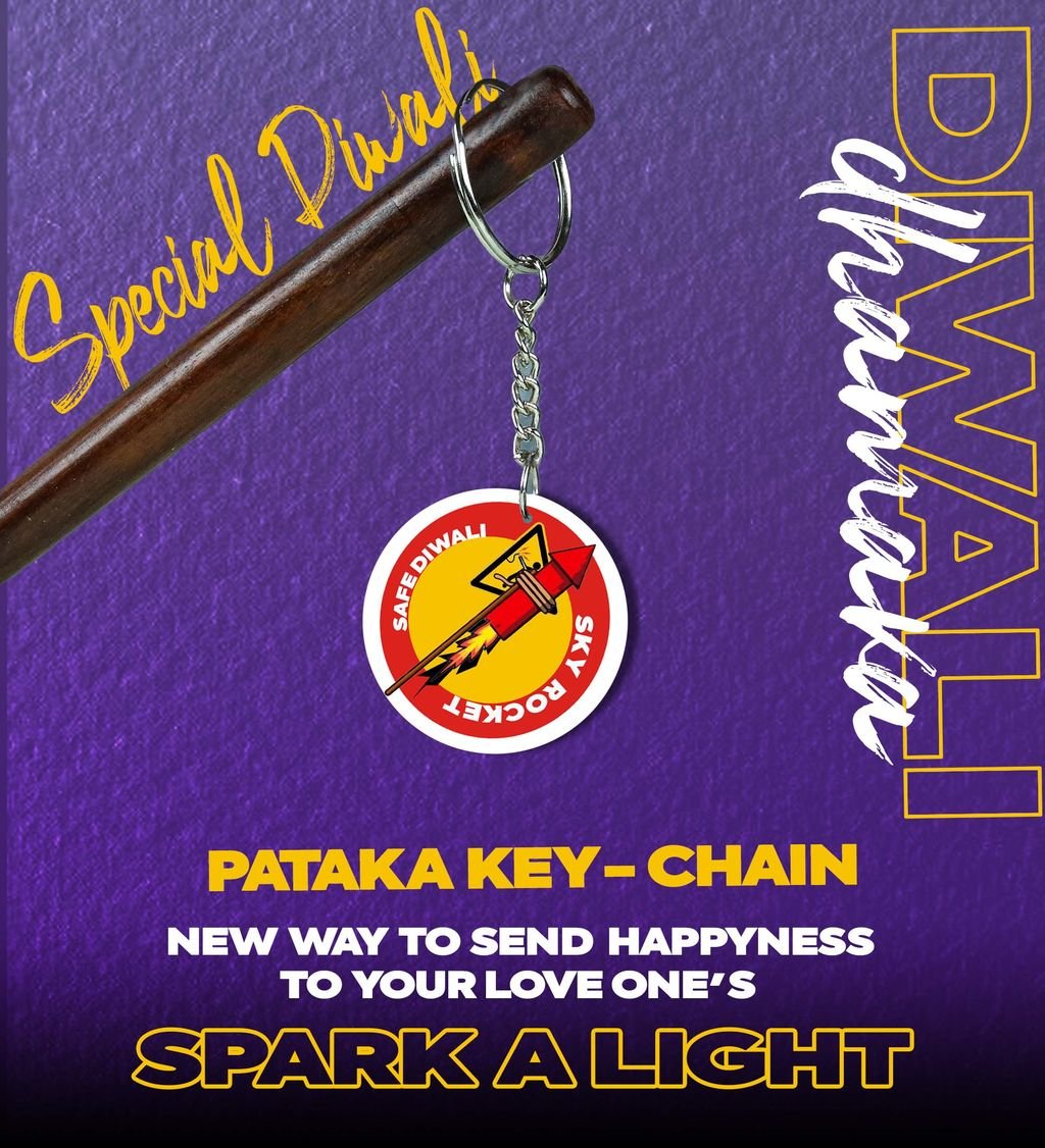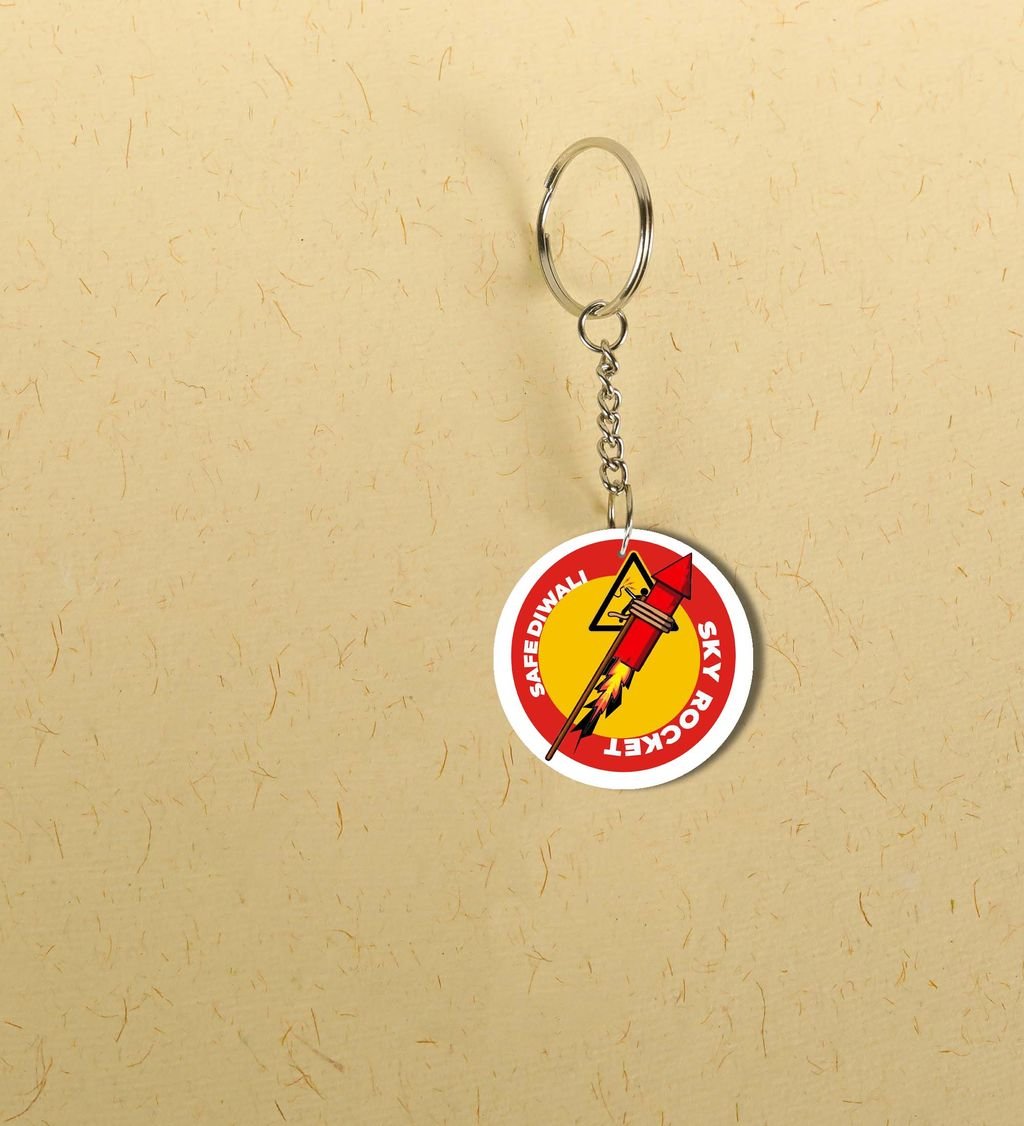 "Light Up Your Diwali with a Bright Red Pataka Keychain for Loved Ones - Printed Round Keychain Pack of 2"