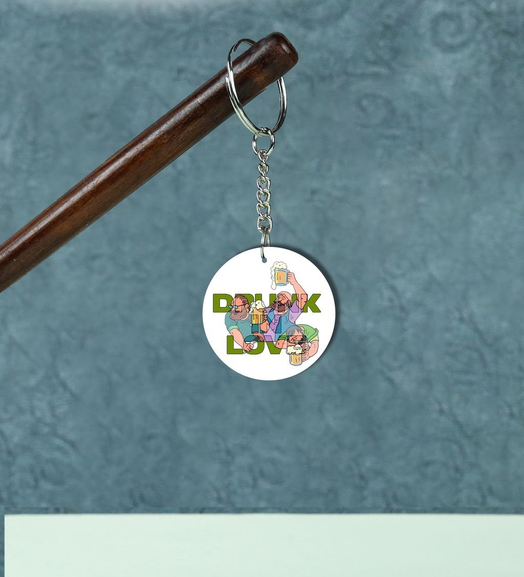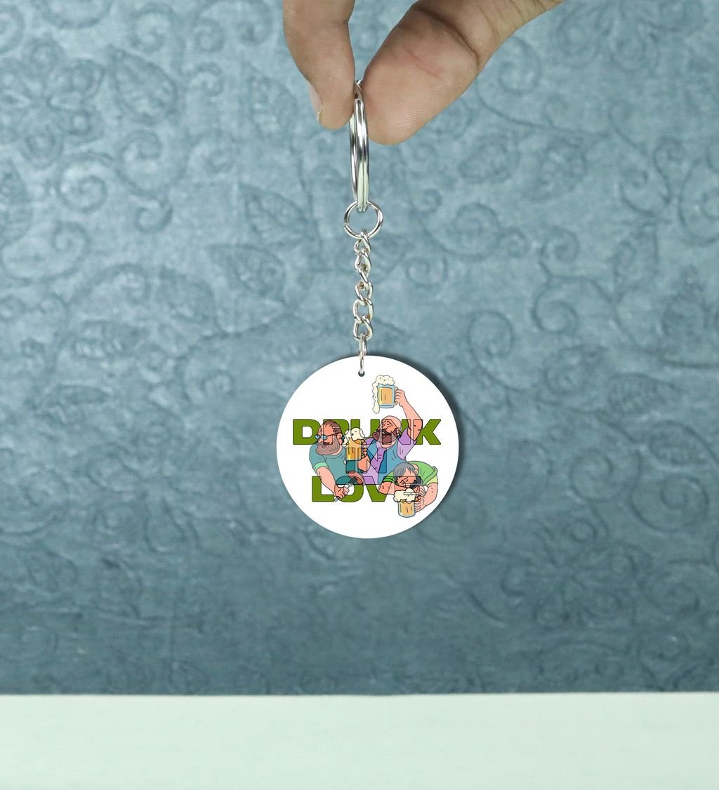 Playful Drunk Love and Laughing Mates: Printed Round Keychain Pack of 2