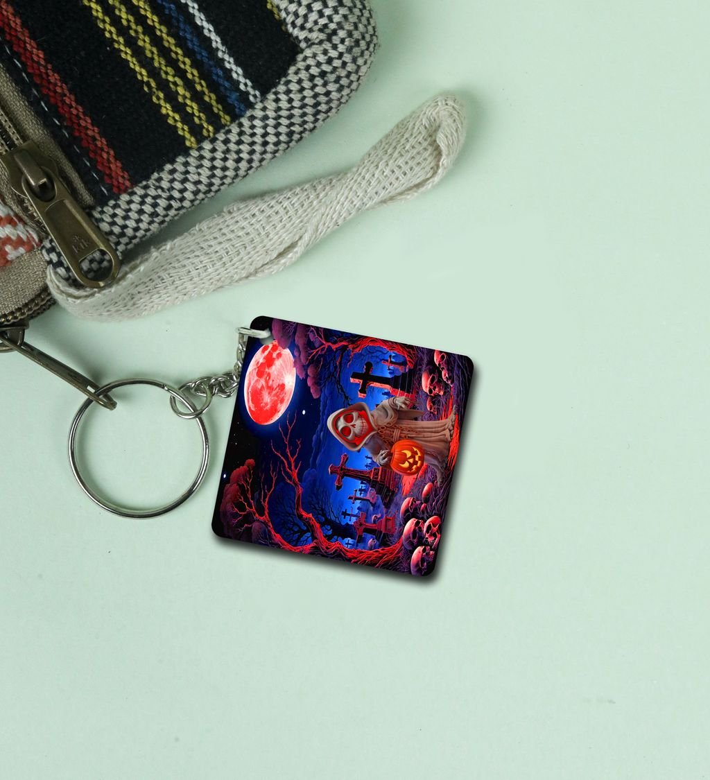 Red Moon Graveyard Scene with Ghostly Pumpkin Carrier Printed Keychain Pack of 2