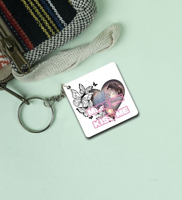 Romantic Miss Me Kiss Me Pair Printed Keychain Pack of 2