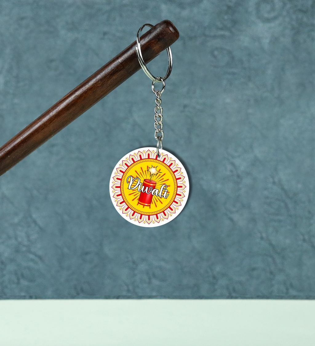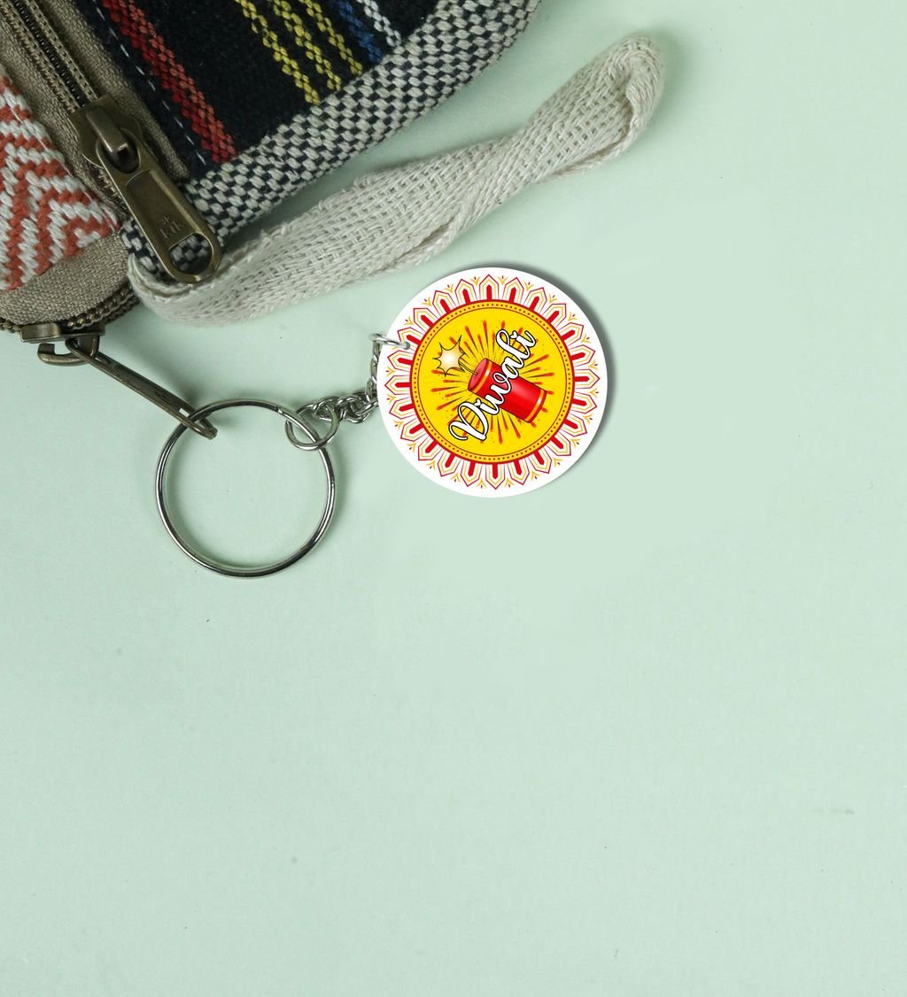 Sparkling Diyas Glow Diwali Printed Round Keychain Pack of 2
