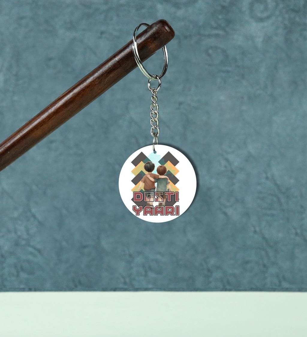 Walking Together Dosti Yaari Artwork: Printed Round Keychain Pack of 2