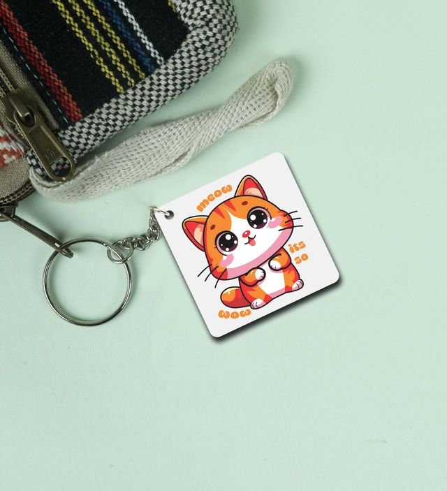 Wow Meow Vibes Printed Keychain
