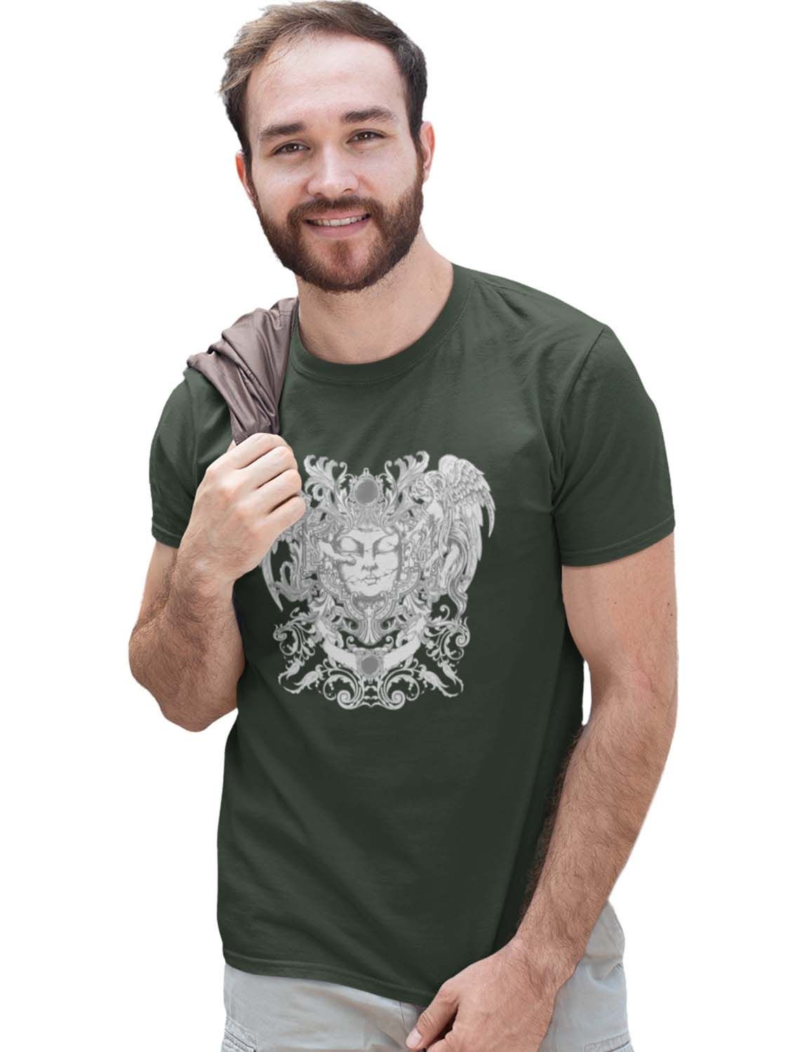 Rods And Roses Green Round Neck Cotton Half Sleeved T-Shirt with Printed Graphics