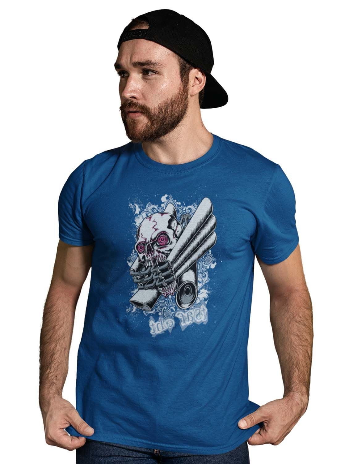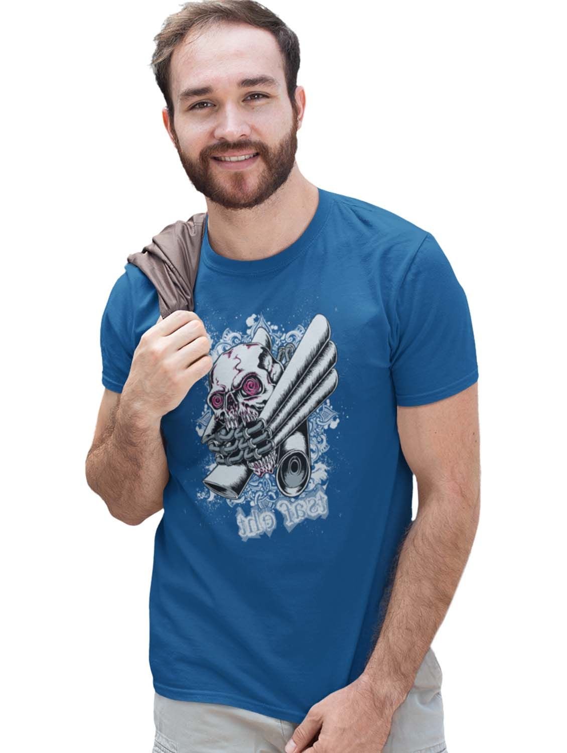 The Strange Craniums Blue Round Neck Cotton Half Sleeved T-Shirt with Printed Graphics