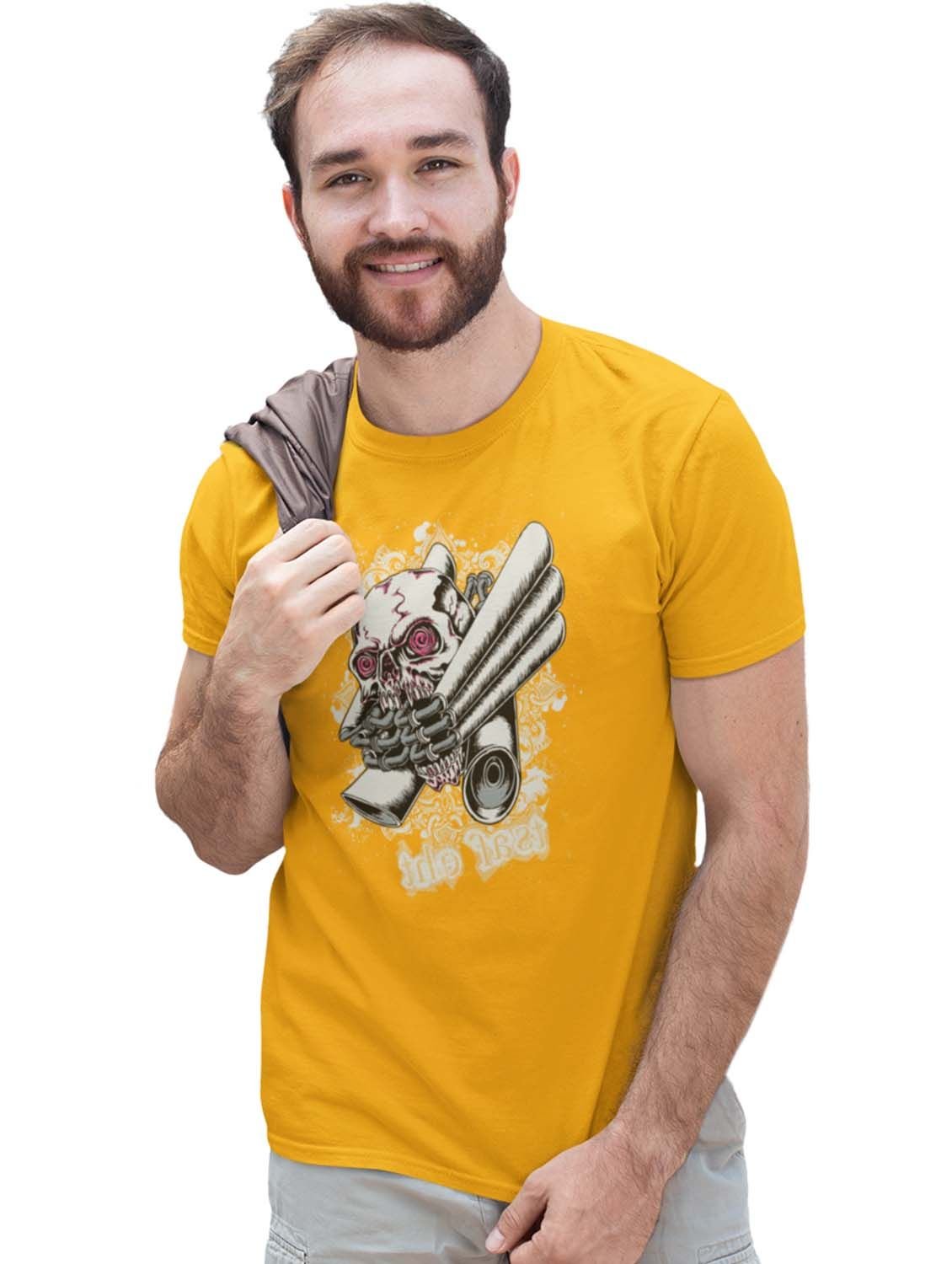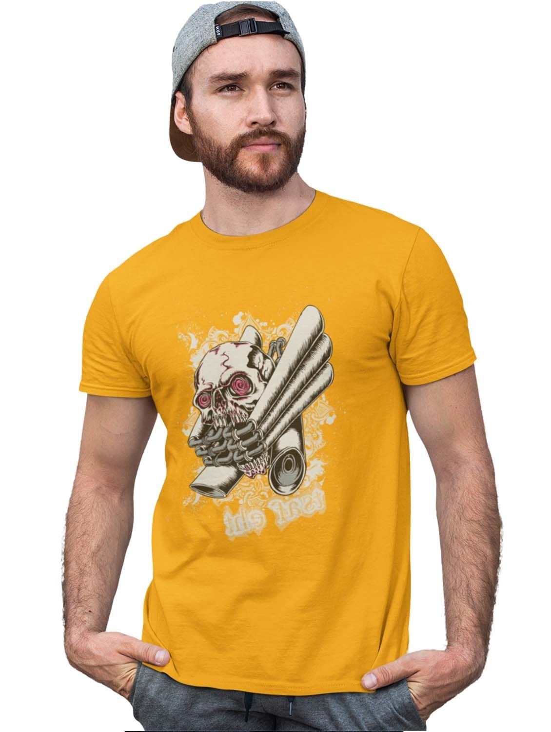 The Deathheads Yellow Round Neck Cotton Half Sleeved T-Shirt with Printed Graphics