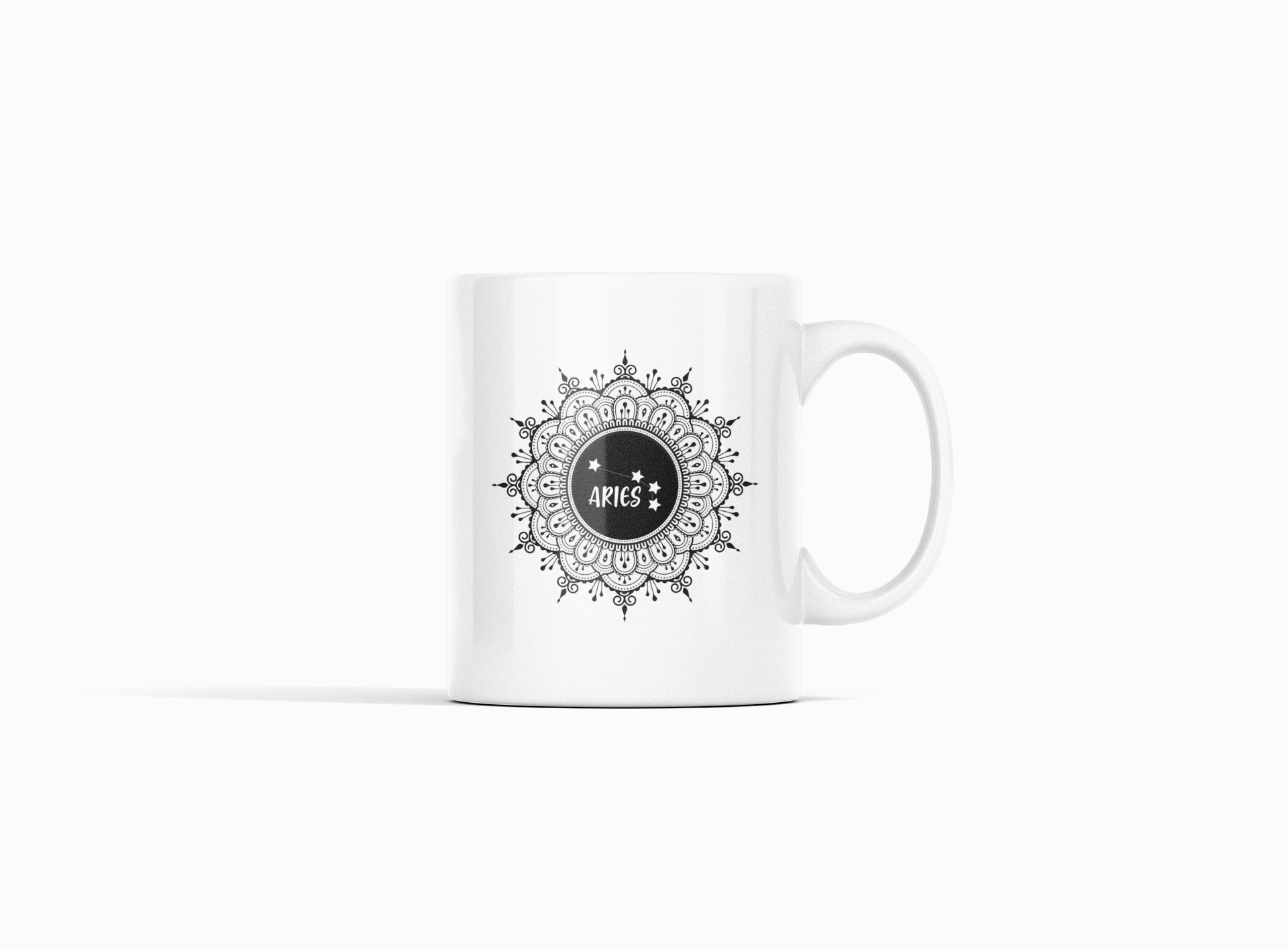Aries mandala - zodiac themed printed ceramic white coffee and tea mugs/ cups for astrology lovers