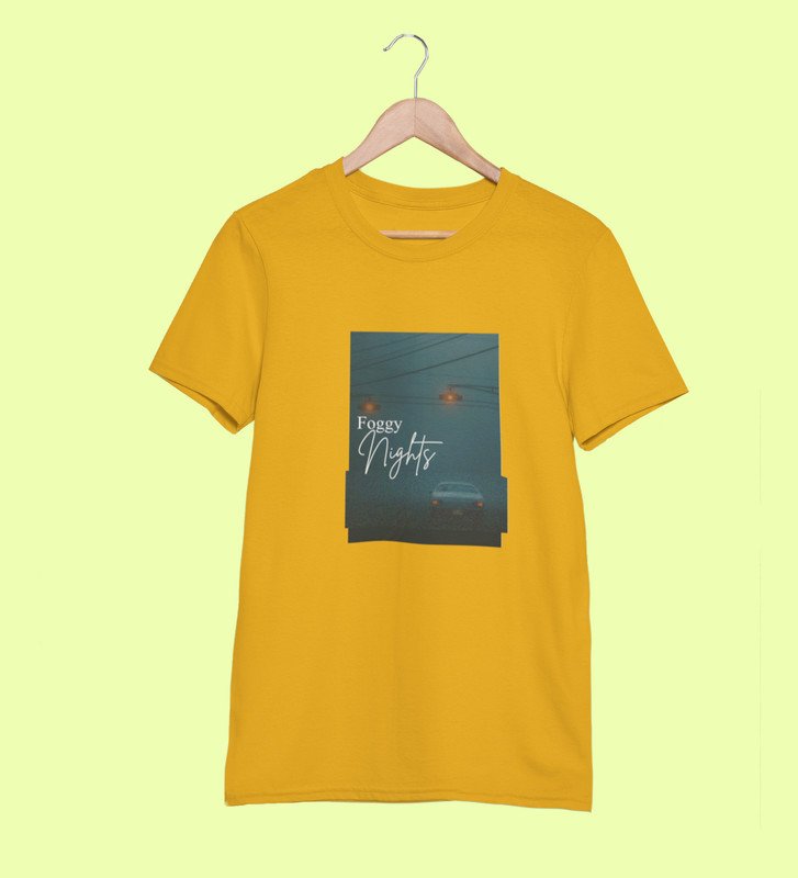 Blur Nights, Yellow Street Symphony: Front Printed Men's Oversized Tee - Urban Elegance