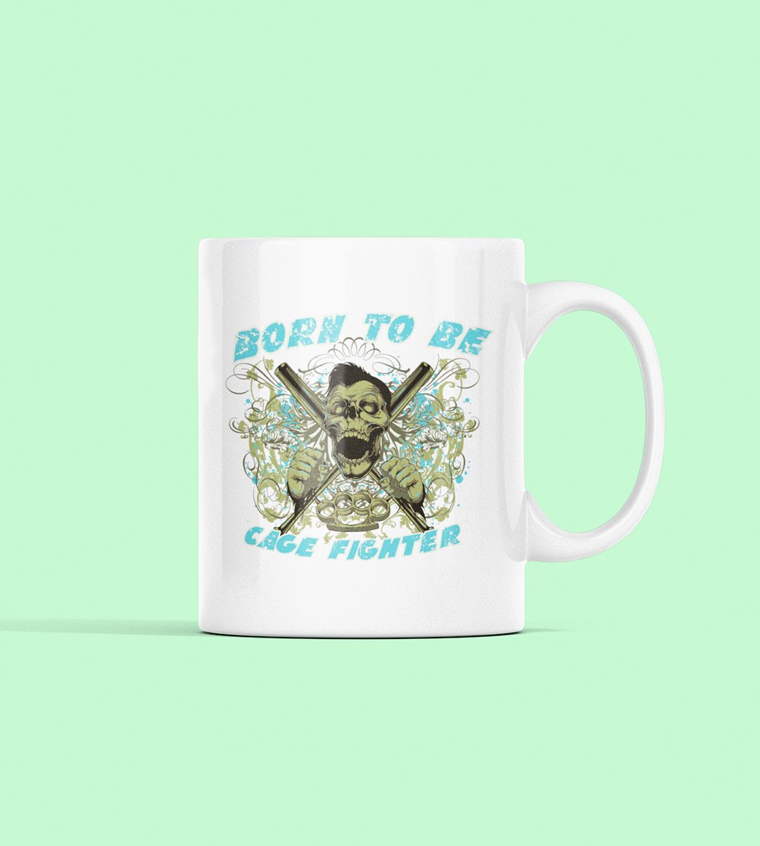 Born to be cage fighter - animation themed printed ceramic white coffee and tea mugs/ cups for animation lovers