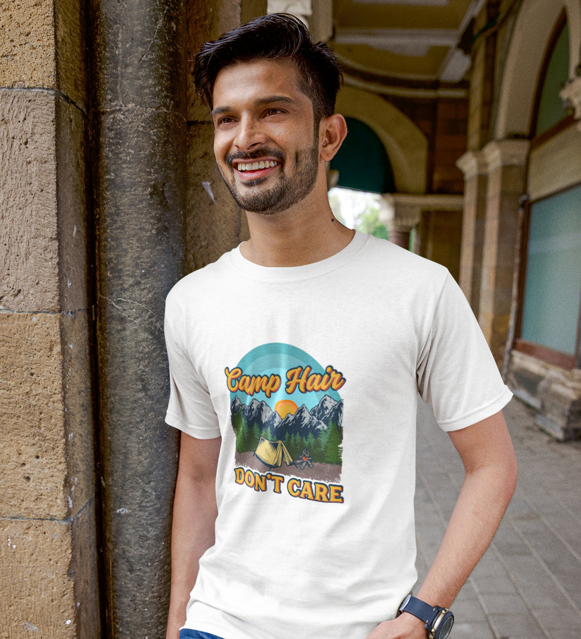 JD.TRENDS The Camp Hair White Round Neck Cotton Half Sleeved Men's T-Shirt with Printed Graphics