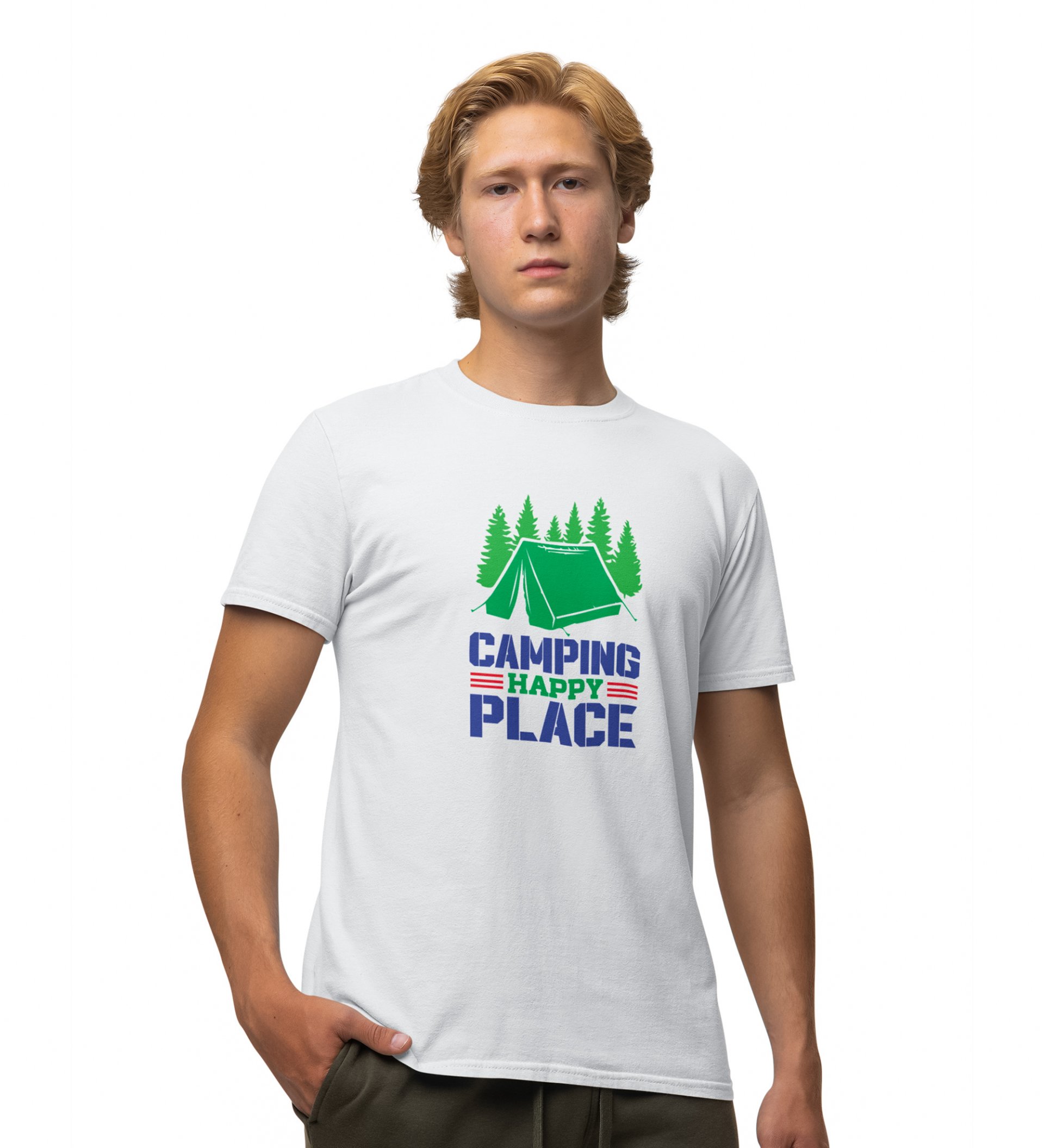 JD.TRENDS My Happy Place White Round Neck Cotton Half Sleeved Men's T-Shirt with Printed Graphics