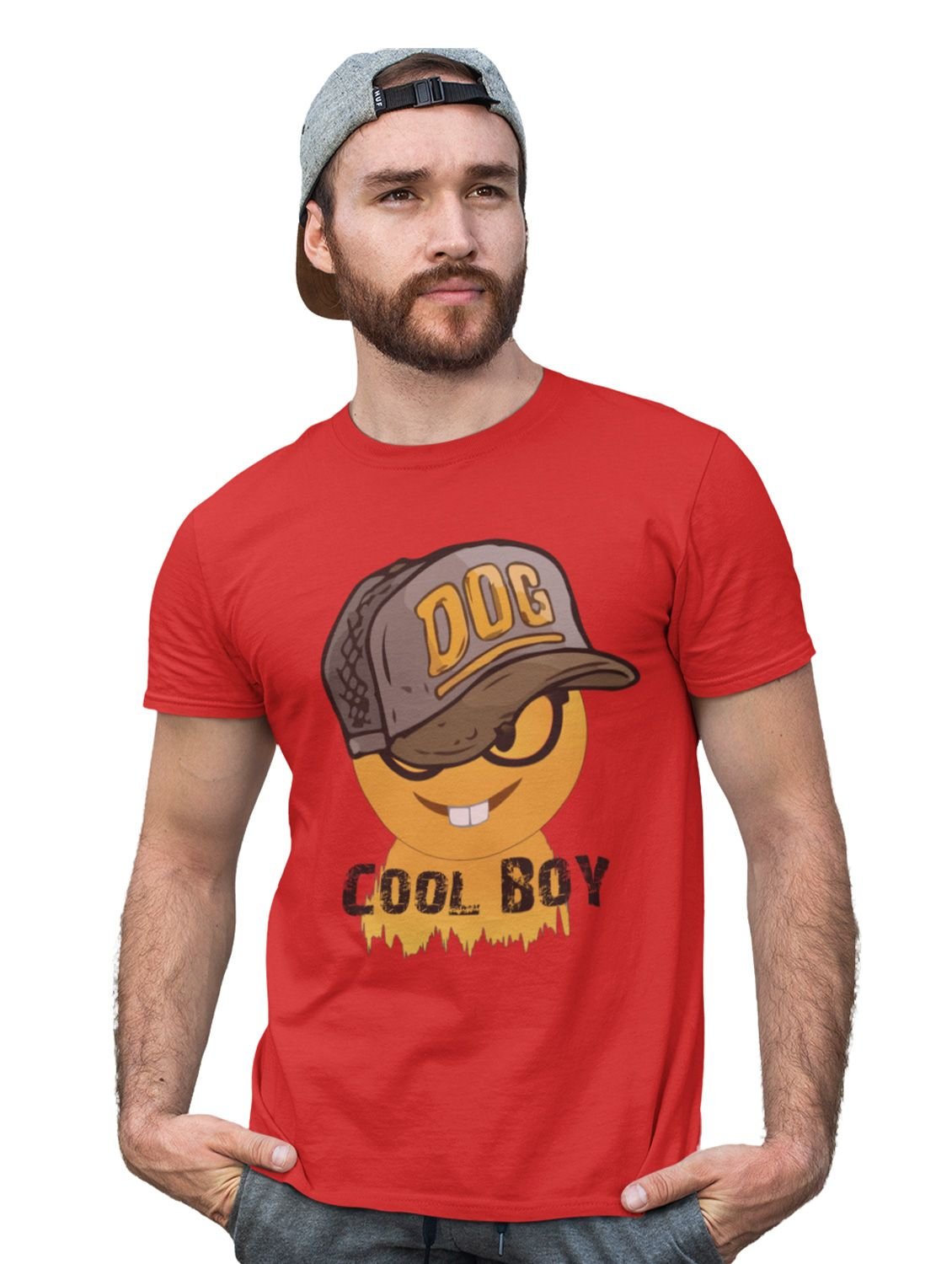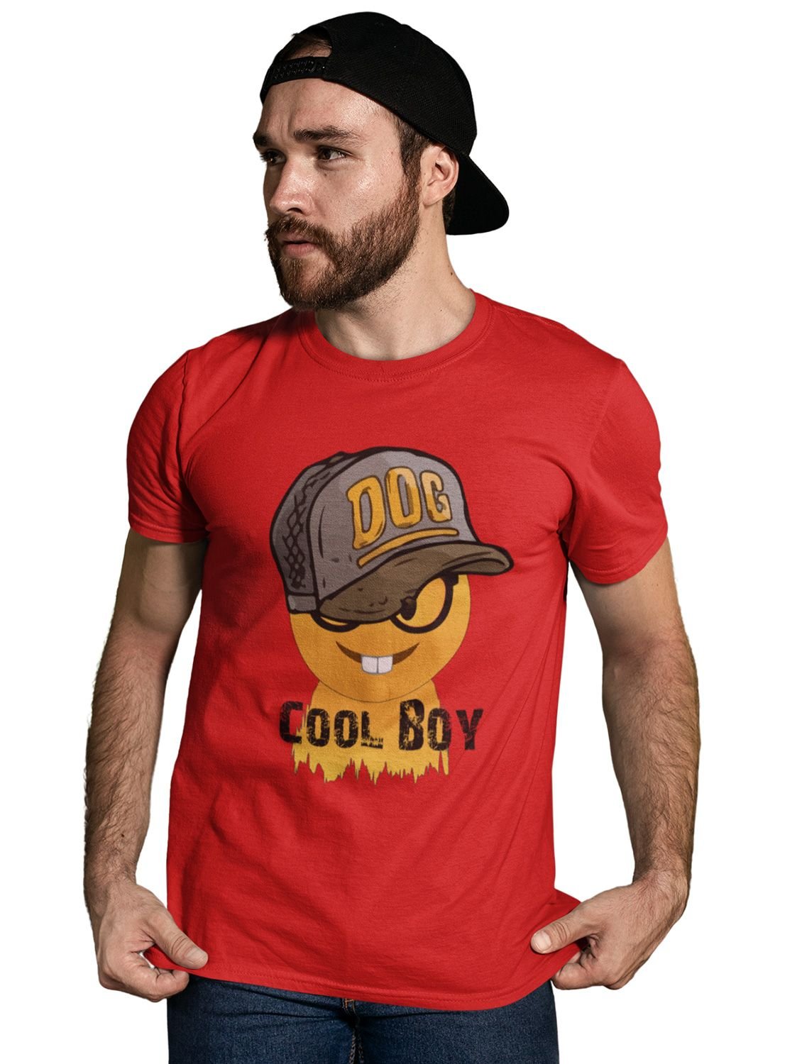 Cool Boy with Two Rabbit Teeth Emoji T-shirt (Red) - Clothes for Emoji Lovers - Foremost Gifting Material for Your Friends and Close Ones