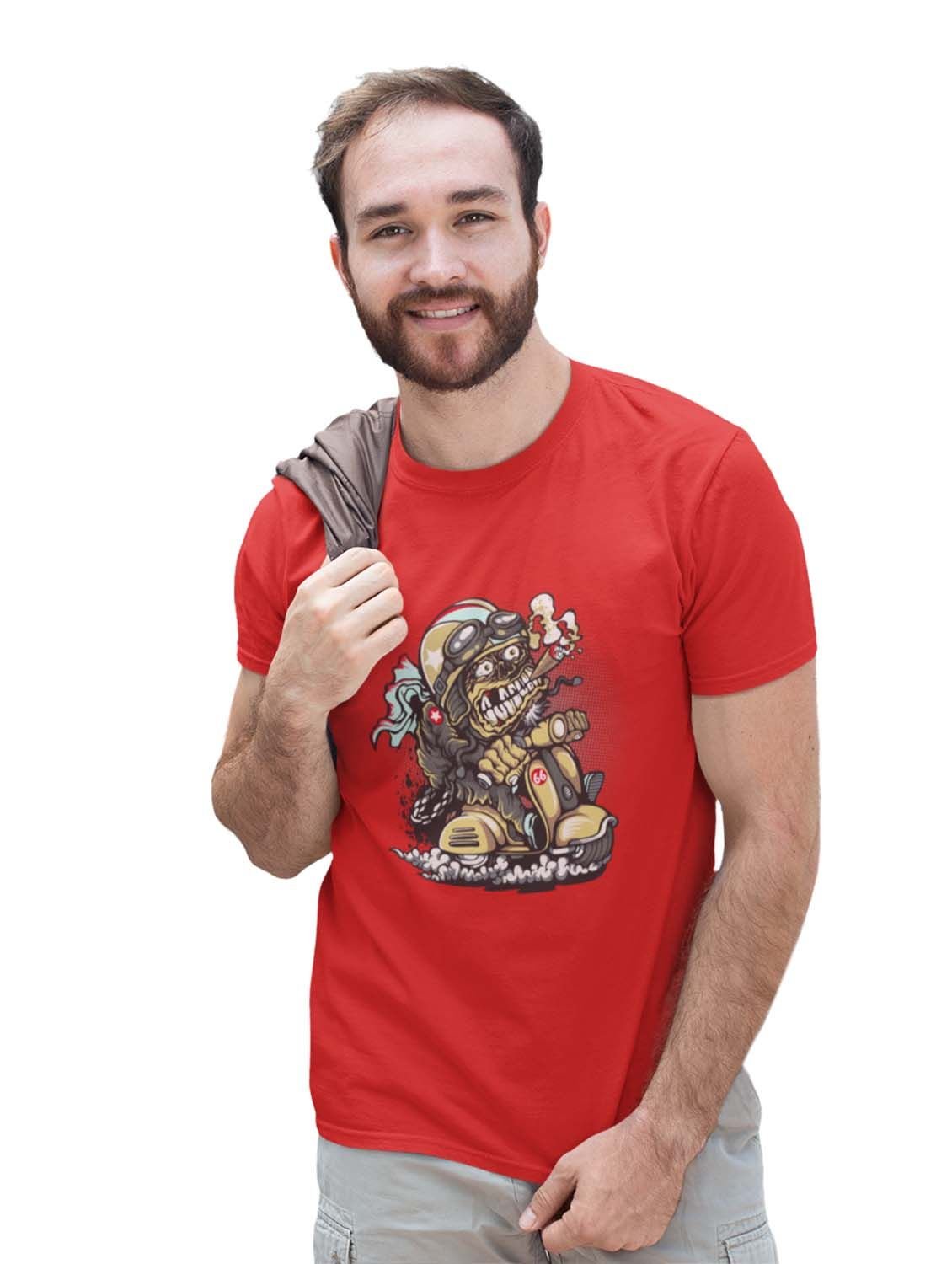 Demon- The Rider Red Round Neck Cotton Half Sleeved T-Shirt with Printed Graphics