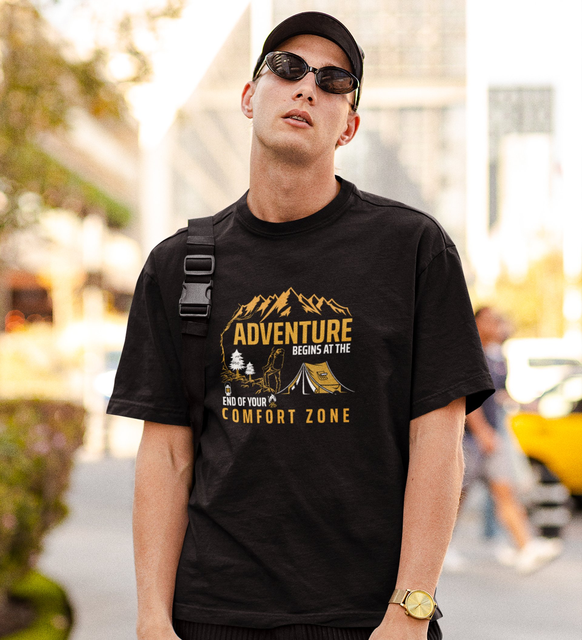 Adventure is an important part of our life. Everyone has their thoughts over their personal adventure journeys. So whats your take on it ? We have brought you tons of option to choose from, to express your inner Adventurer. Made of fabric, and designed for your comfort and style. Don't wait anymore to get your personal T-shirt.