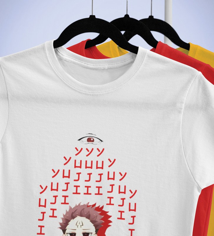 Evil Eye Itadori Cotton White Printed Tshirt For Mens and Boys