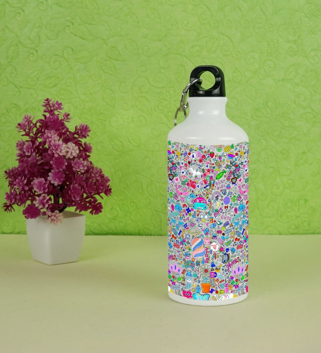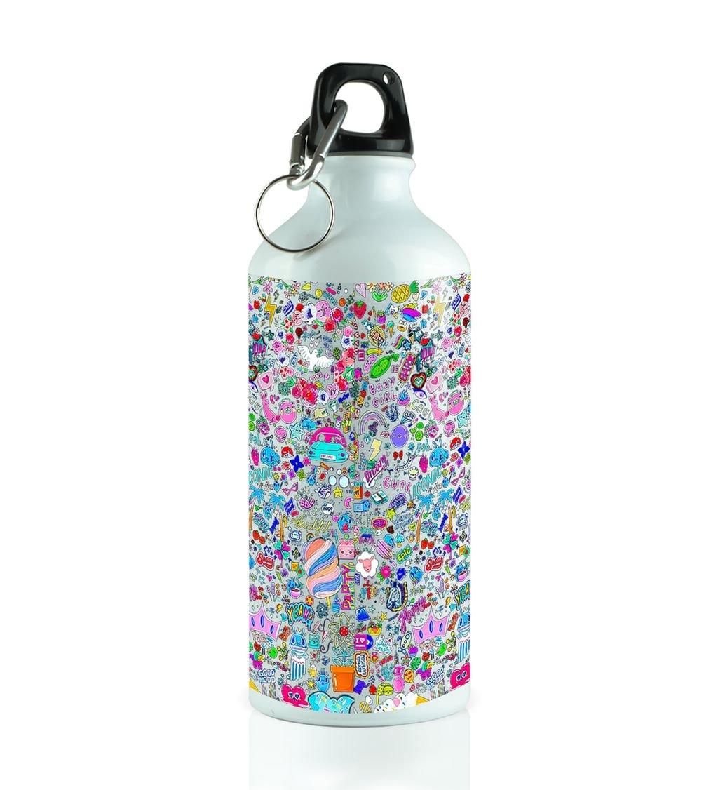 Express YouSARAf with Vibrant Shiny Color Graffiti on Aluminium Water Bottle 600ml