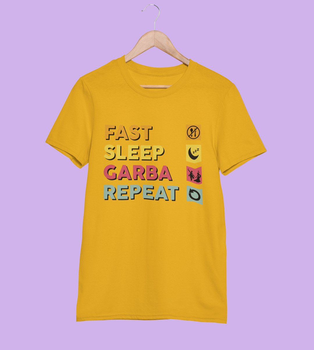 Fast sleep garba repeat printed unisex adults round neck cotton half-sleeve yellow tshirt specially for Navratri festival/ Durga puja
