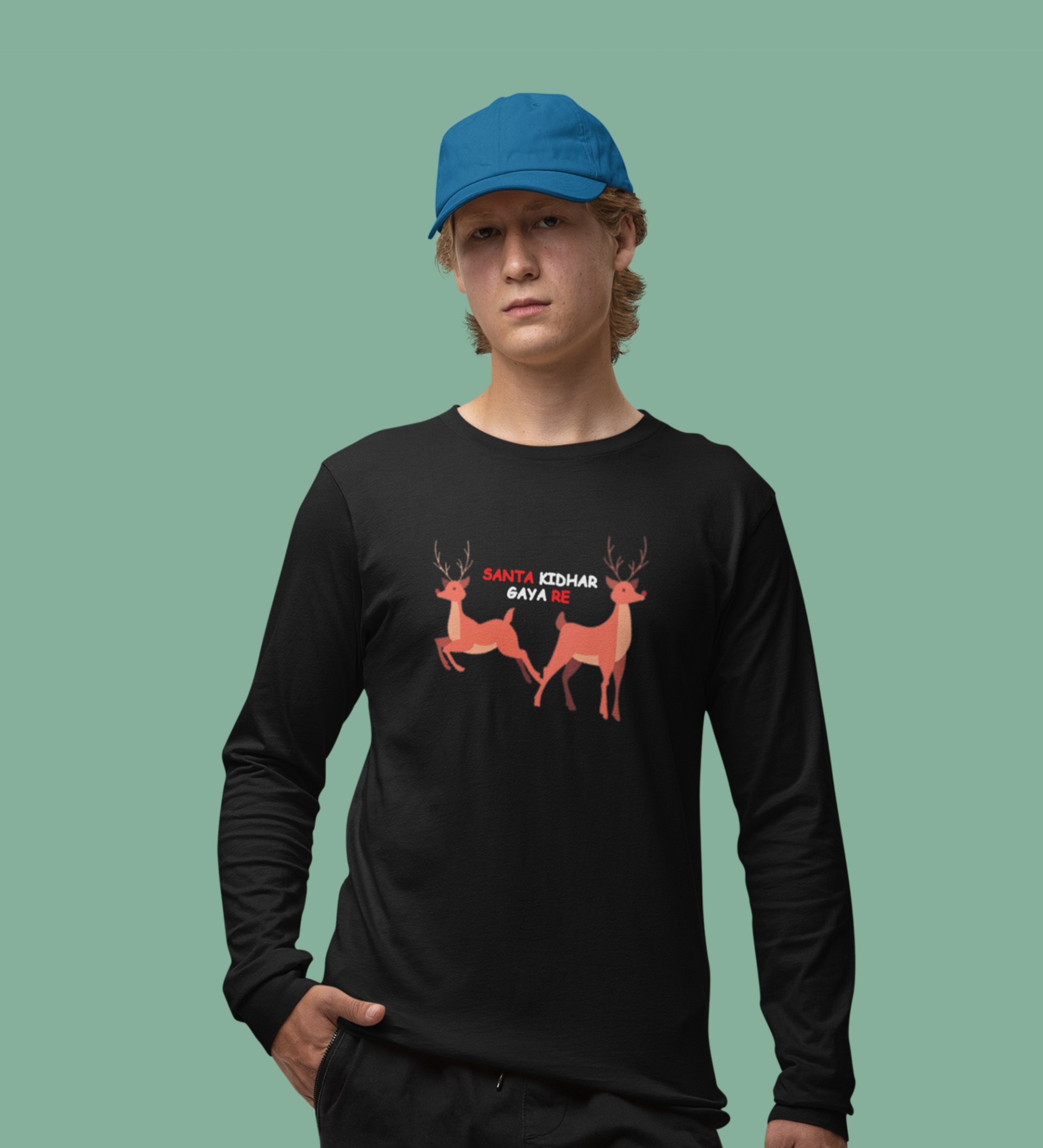 Find The Santa: Cute DesignerFull Sleeve T-shirt For Kids Black Best Gift For Kids
