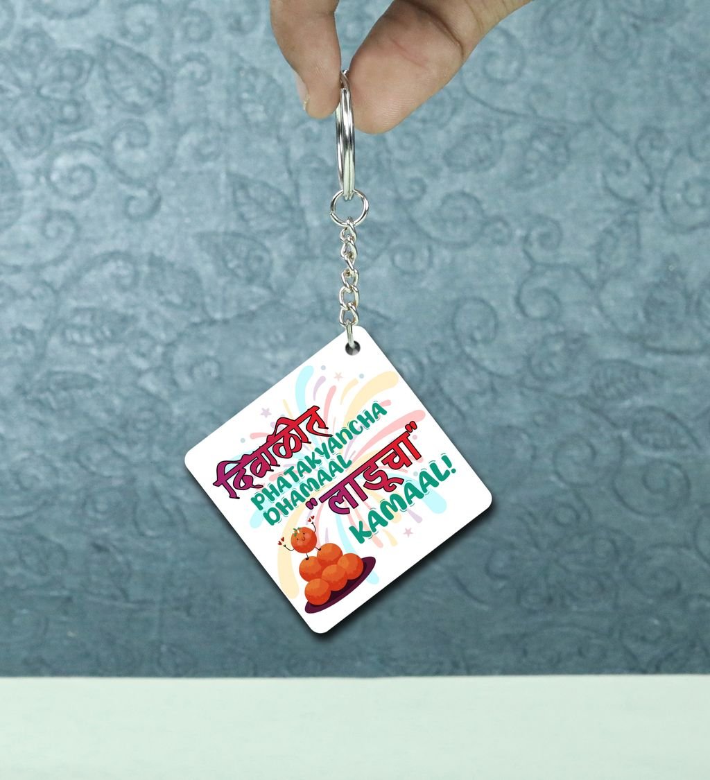 Celebrate this festive season with stylish Diwali Slogan Printed Square Keychains. Designed with vibrant prints and motivational festival slogans, these keychains are perfect for gifting or personal use. Lightweight, durable, and easy to carry, they add a festive charm to your everyday essentials. Whether it