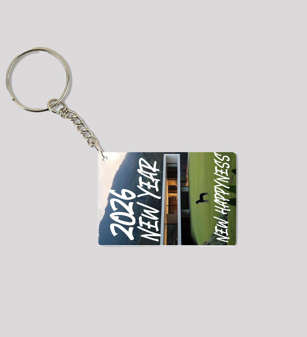 Inspiring Green Landscape with Stylish Home Design to Welcome 2026 New Year Printed Keychain Pack of 2.