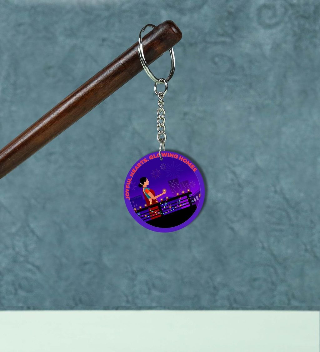 Joyful City Nights and Sparkling Lights Printed Round Keychain Pack of 2