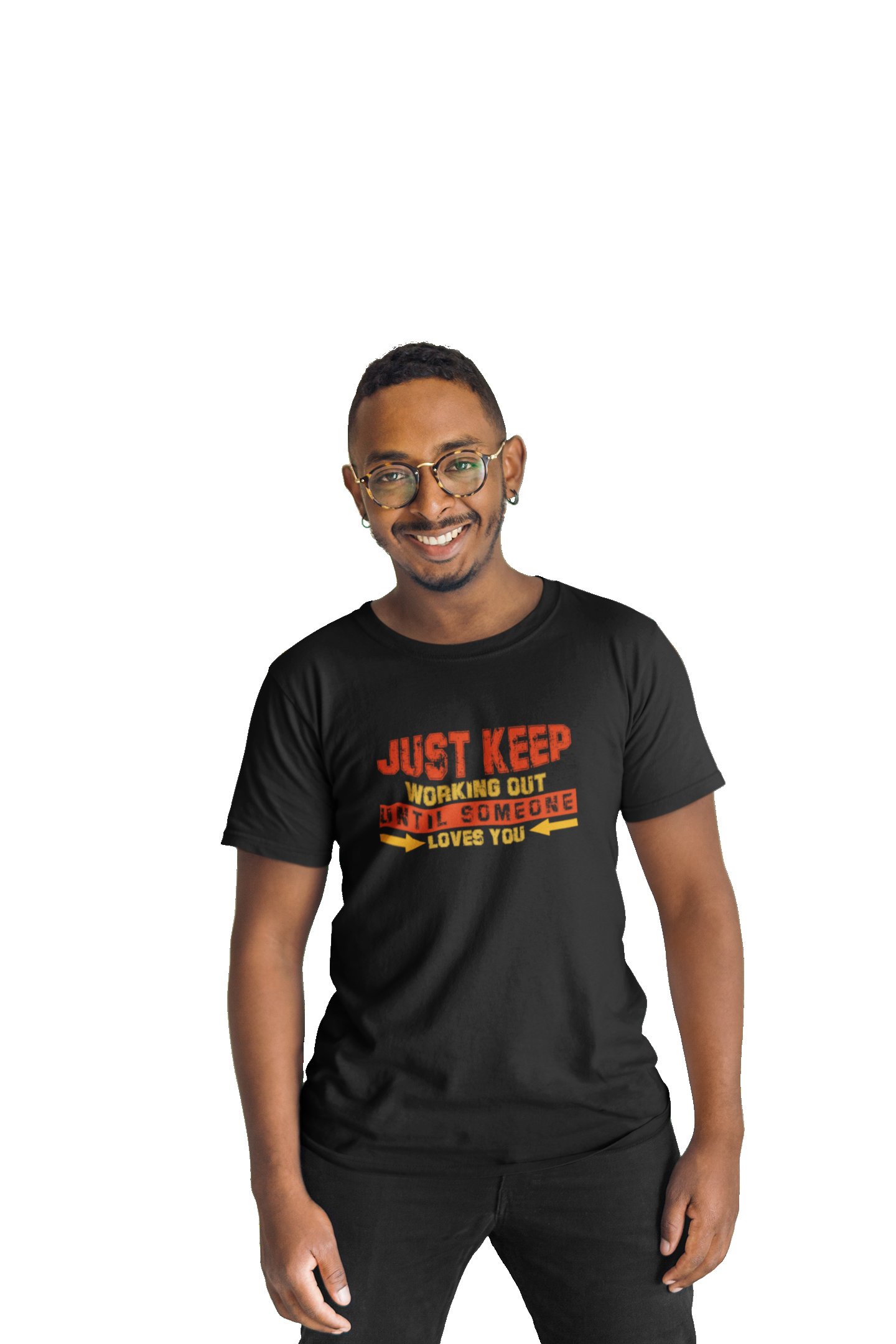 Just Keep Working Out Until Someone Loves You, (BG Red And Yellow), Round Neck Gym Tshirt (White Tshirt) - Clothes for Gym Lovers - Suitable for Gym Going Person - Foremost Gifting Material for Your Friends and Close Ones