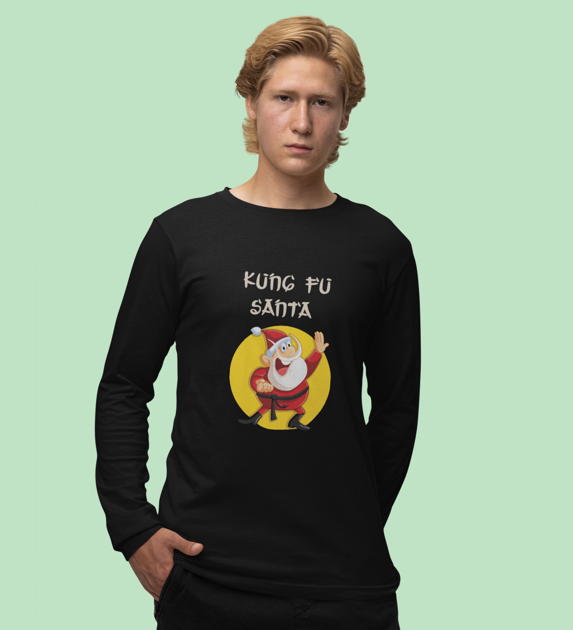 Kung Fu Santa: PerfectFull Sleeve T-shirt For Secret SantaBlack Best Gift For Boys Girls