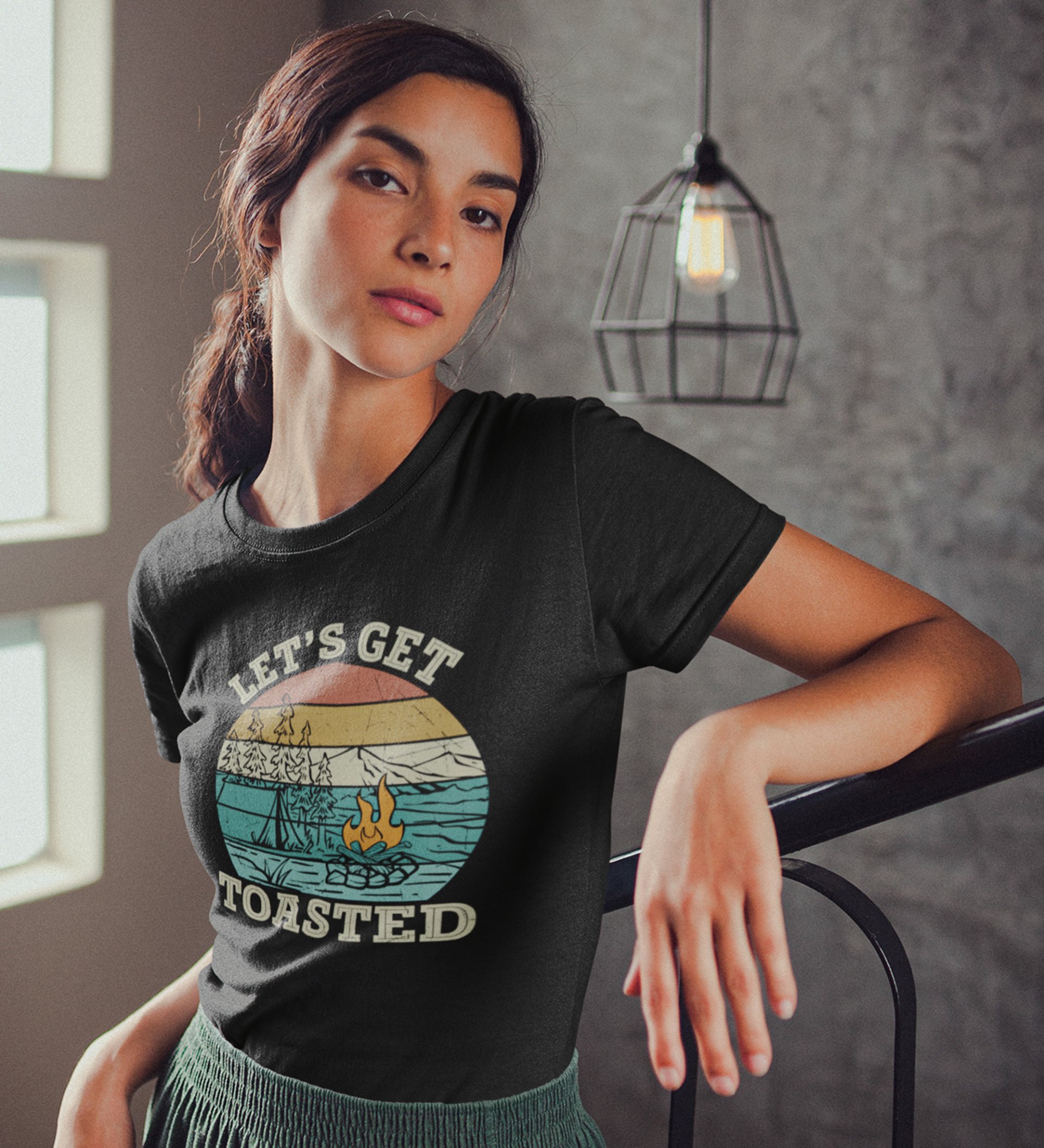HopOfferLet's Get Toasted Black Round Neck Cotton Half Sleeved Women's T-Shirt with Printed Graphics
