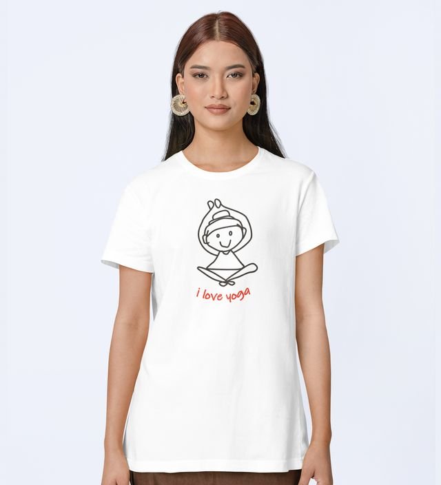 Love For Yoga White Round Neck Cotton Half Sleeved Women T-Shirt with Printed Graphics