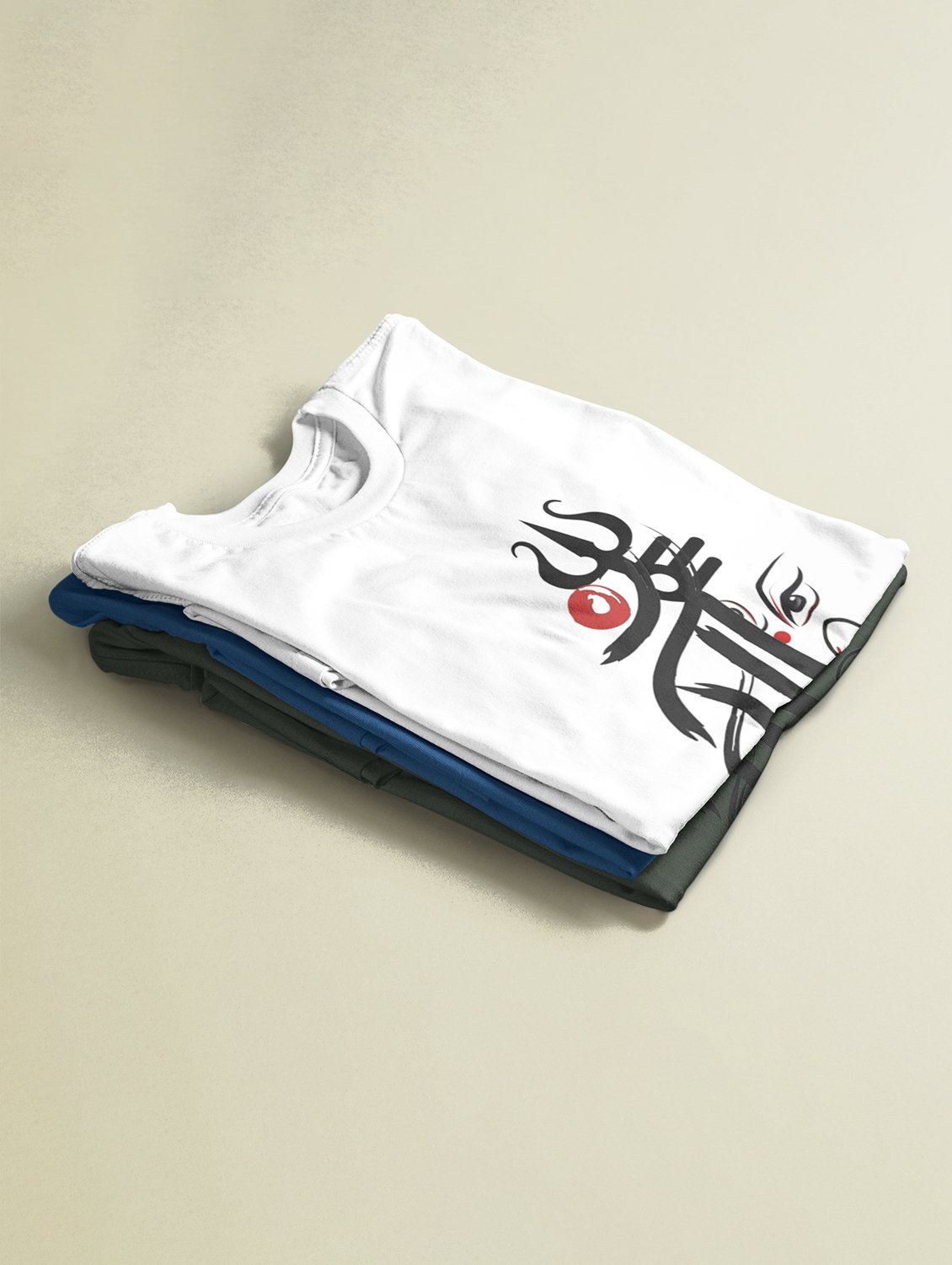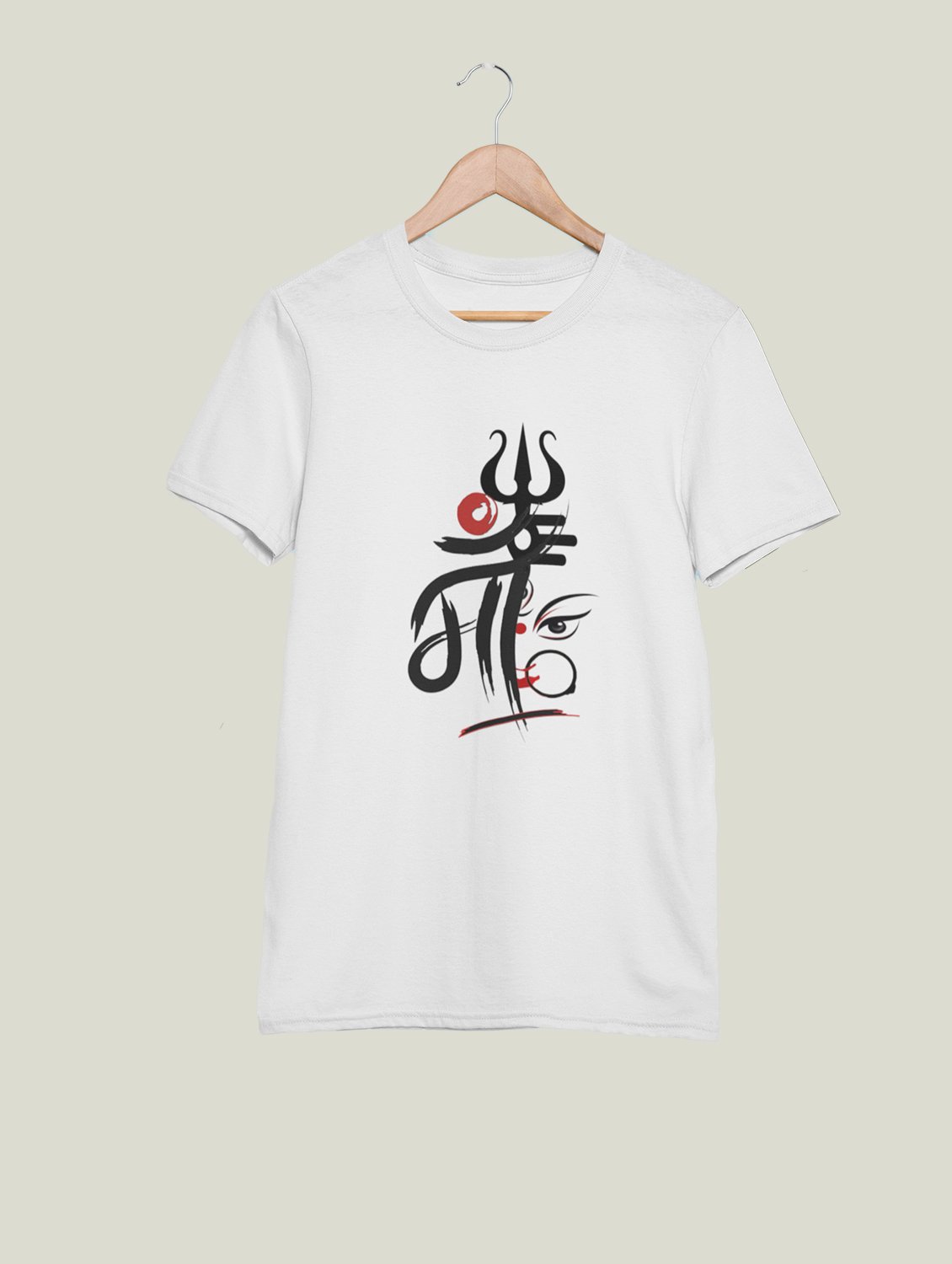 Maa hindi text printed unisex adults round neck cotton half-sleeve white tshirt specially for Navratri festival/ Durga puja
