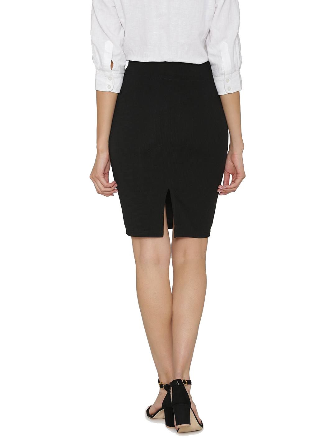 N-Gal Women's Polyester Lycra High Waist Versatile Straight Knee Length Pencil Skirt_Black