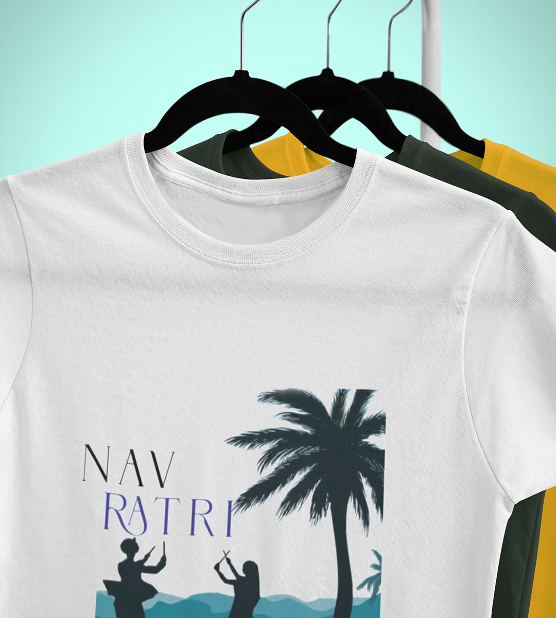 Navratri is a very auspicious festival for hindus. It takes place at the beginning of October and sometimes September. Enjoy the 9 days of festivities with full zeal and make yourself submerged in the love of Maa Durga. Navratri is also known as Durga Puja. And with this Tees, you can shine like a star during this festive season with our navratri themed cotton half sleeved Tshirts. You can pair our t-shirts with trousers and denim of your choice and make it a weekday smart casual or weekend wear. This is durable. This tshirt is smooth and soft which makes you comfortable to wear during all seasons. The printing in it is durable and odourless. It has five sizes, S,M,L,XL,XXL. The Tshirt colour is intact even after repeated washes. It can be kept in your wardrobe and hangers. Please avoid washing mashine to clean this Tee, it may affect the print. Hand wash only. We have brought you many navratri related designs printed on our different colour Tshirts to choose from. Grab it now.