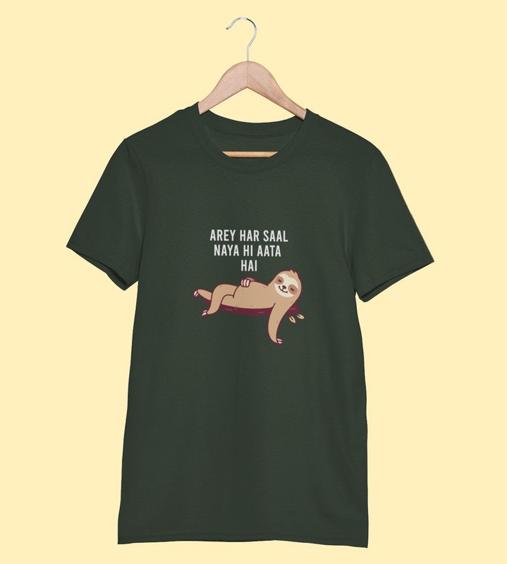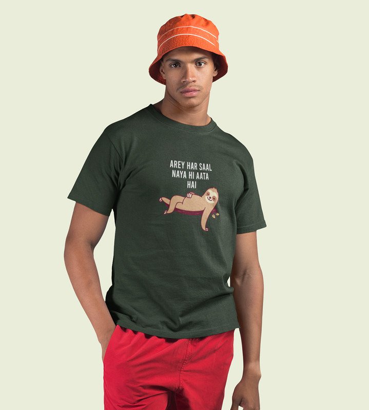 New Year Always Comes Green New Year Printed T-shirt For Mens