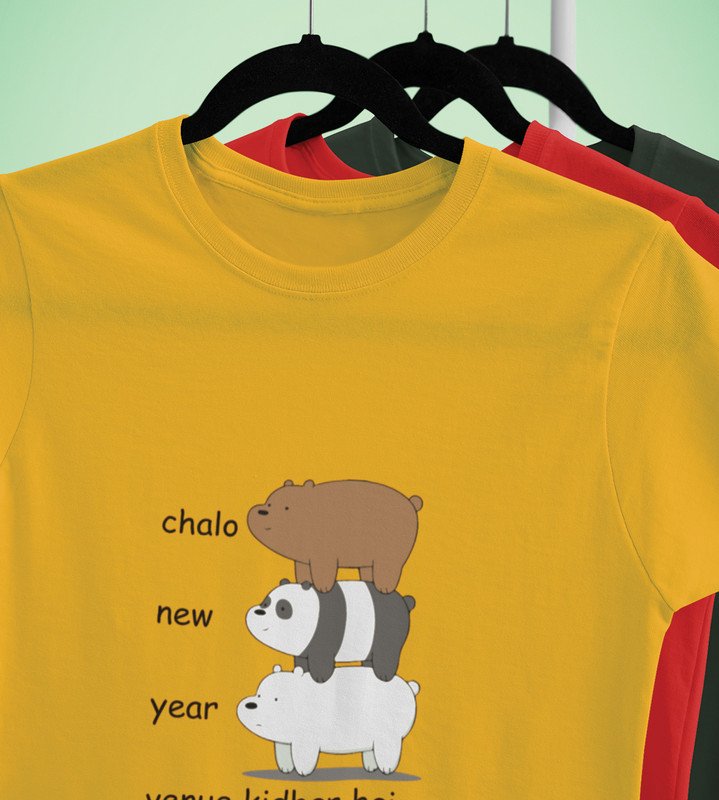 New Year Party Yellow Graphic Printed T-shirt For Mens Boys