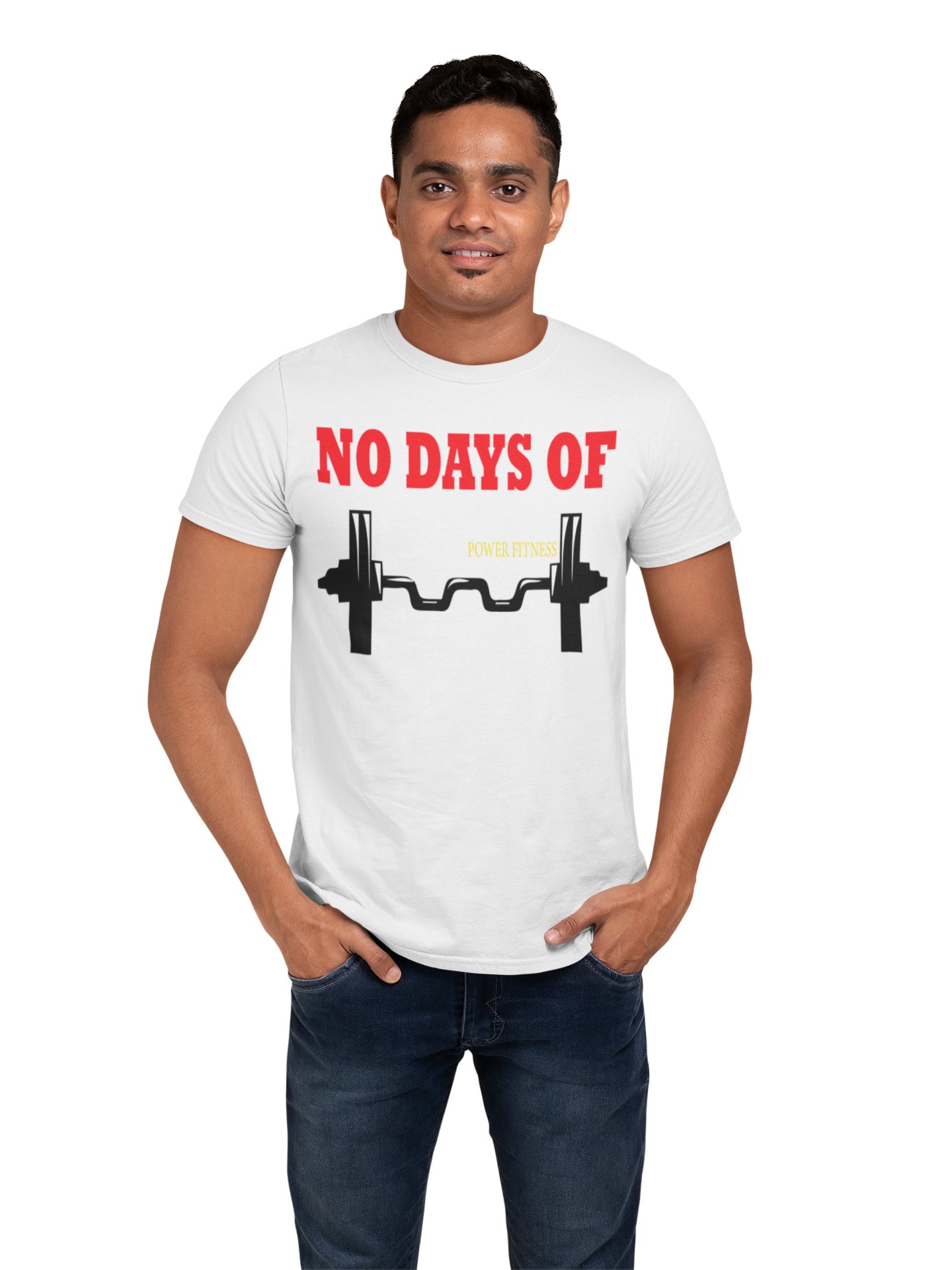 No Days Of Power Fitness, (BG Red, Yellow and Black), Round Neck Gym Tshirt (White Tshirt) - Clothes for Gym Lovers - Suitable for Gym Going Person - Foremost Gifting Material for Your Friends and Close Ones