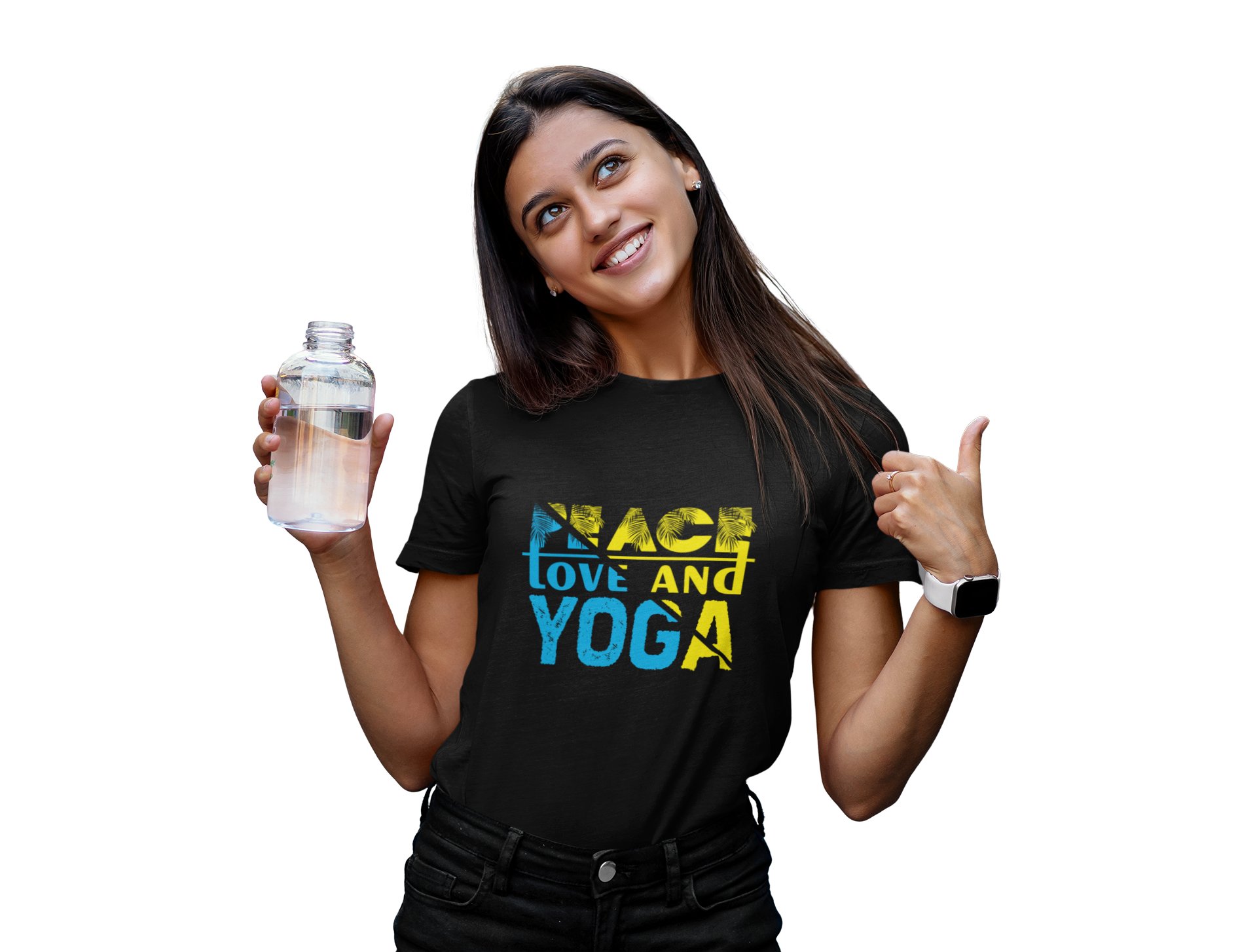 Peace, Love And Yoga Text In Blue And Yellow-Clothes for Yoga Lovers - Suitable For Regular Yoga Going People - Foremost Gifting Material for Your Friends