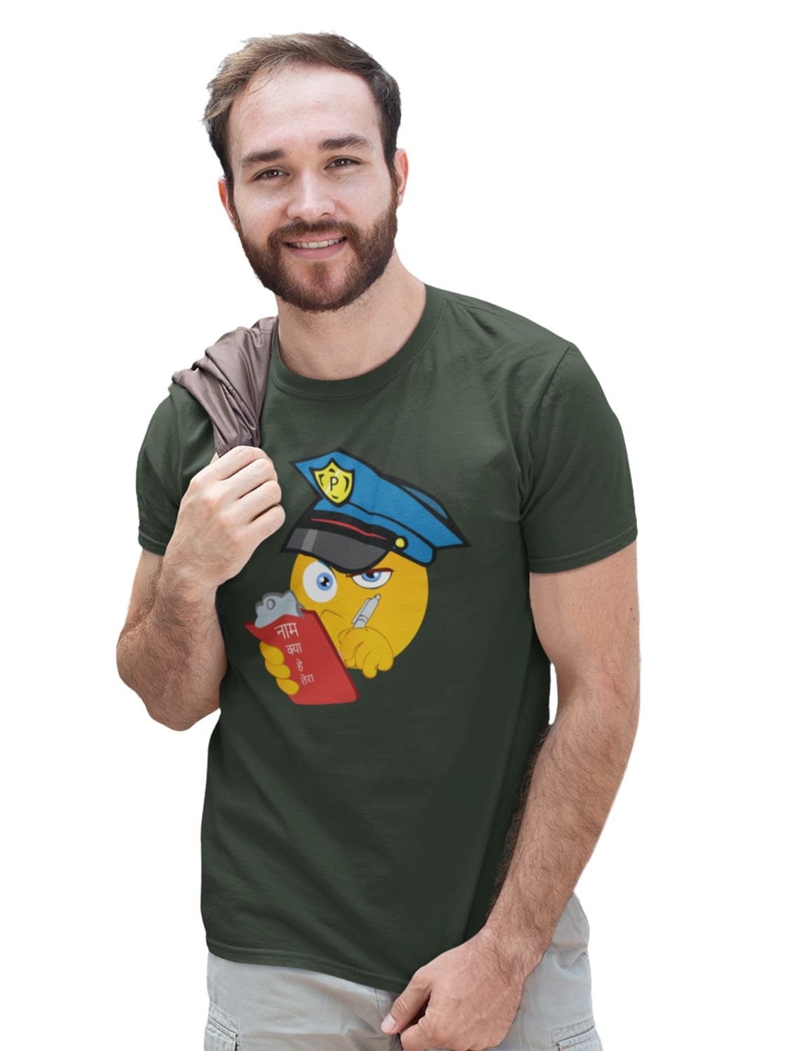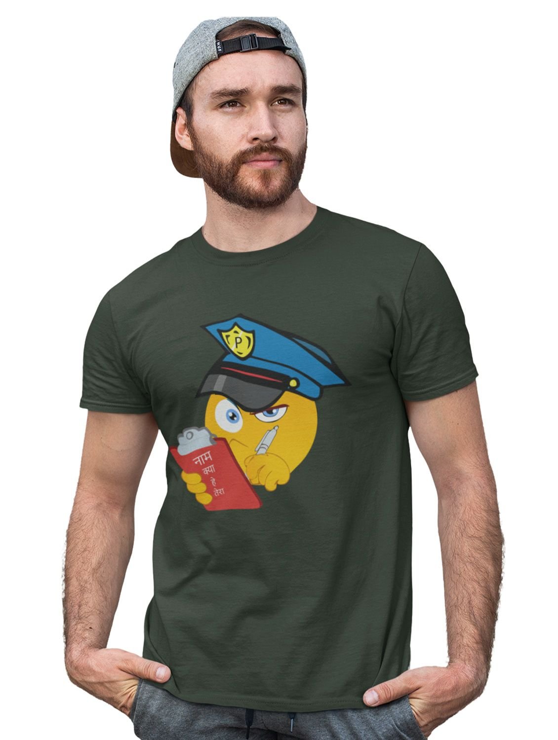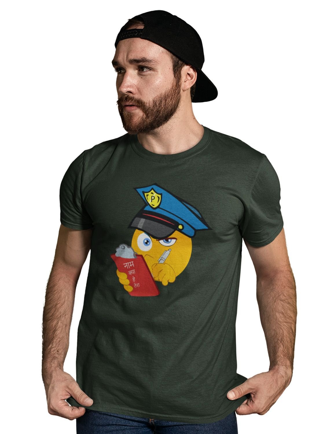 Please be Aware, Police is Here Emoji T-shirt (Green) - Clothes for Emoji Lovers - Suitable for Fun Events - Foremost Gifting Material for Your Friends and Close Ones