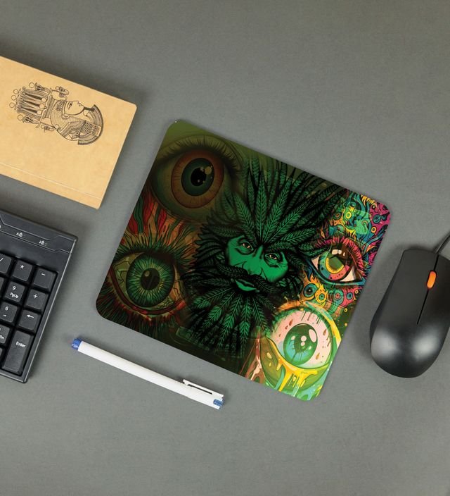 Brighten your desk with this psychedelic-themed mousepad featuring bold, colorful patterns. Made with a smooth fabric surface for precise mouse movement and a non-slip rubber base for stability
