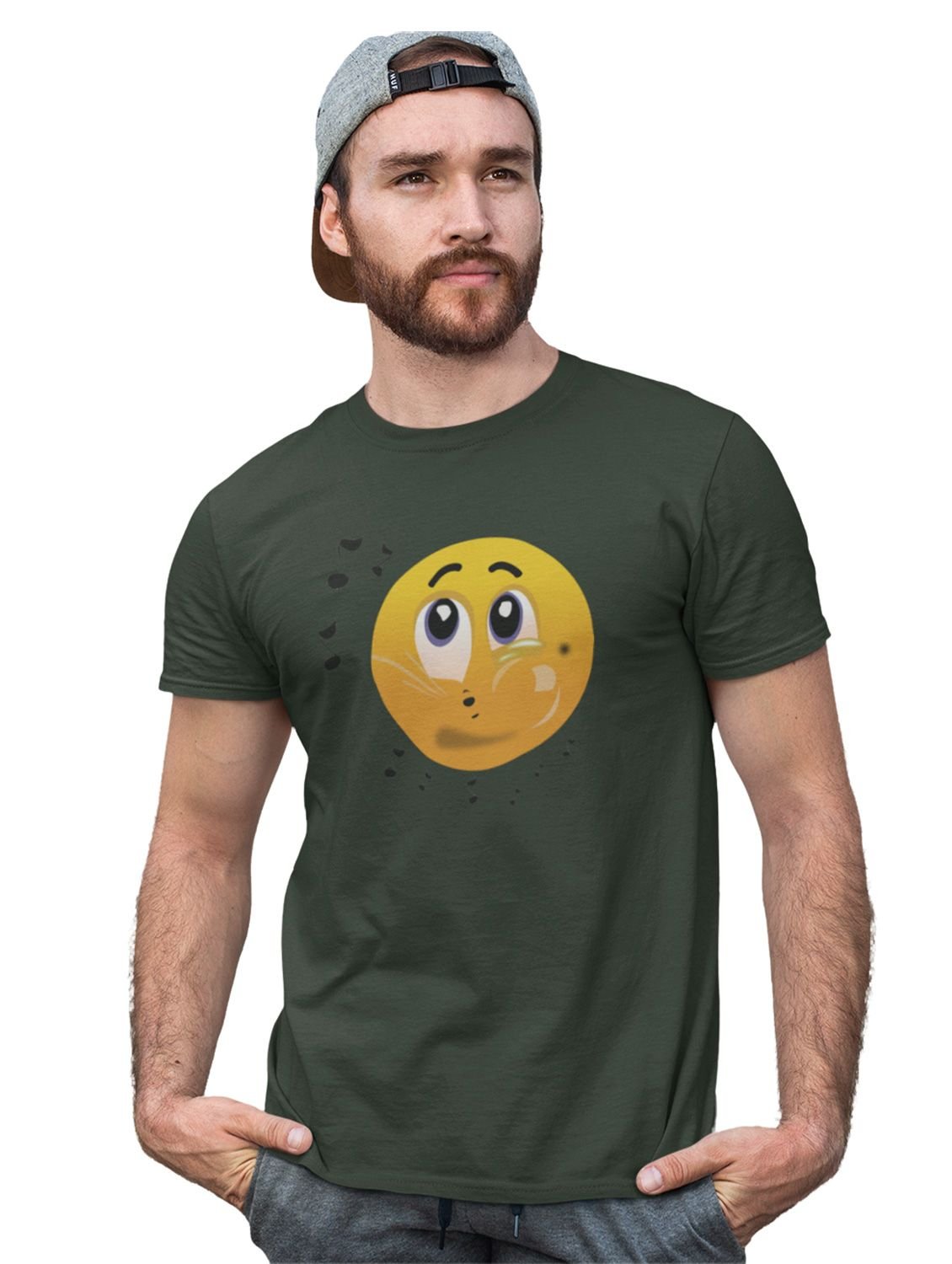 Remembering Music with an Emotional Face Emoji T-shirt (Green) - Clothes for Emoji Lovers - Suitable for Fun Events - Foremost Gifting Material for Your Friends and Close Ones