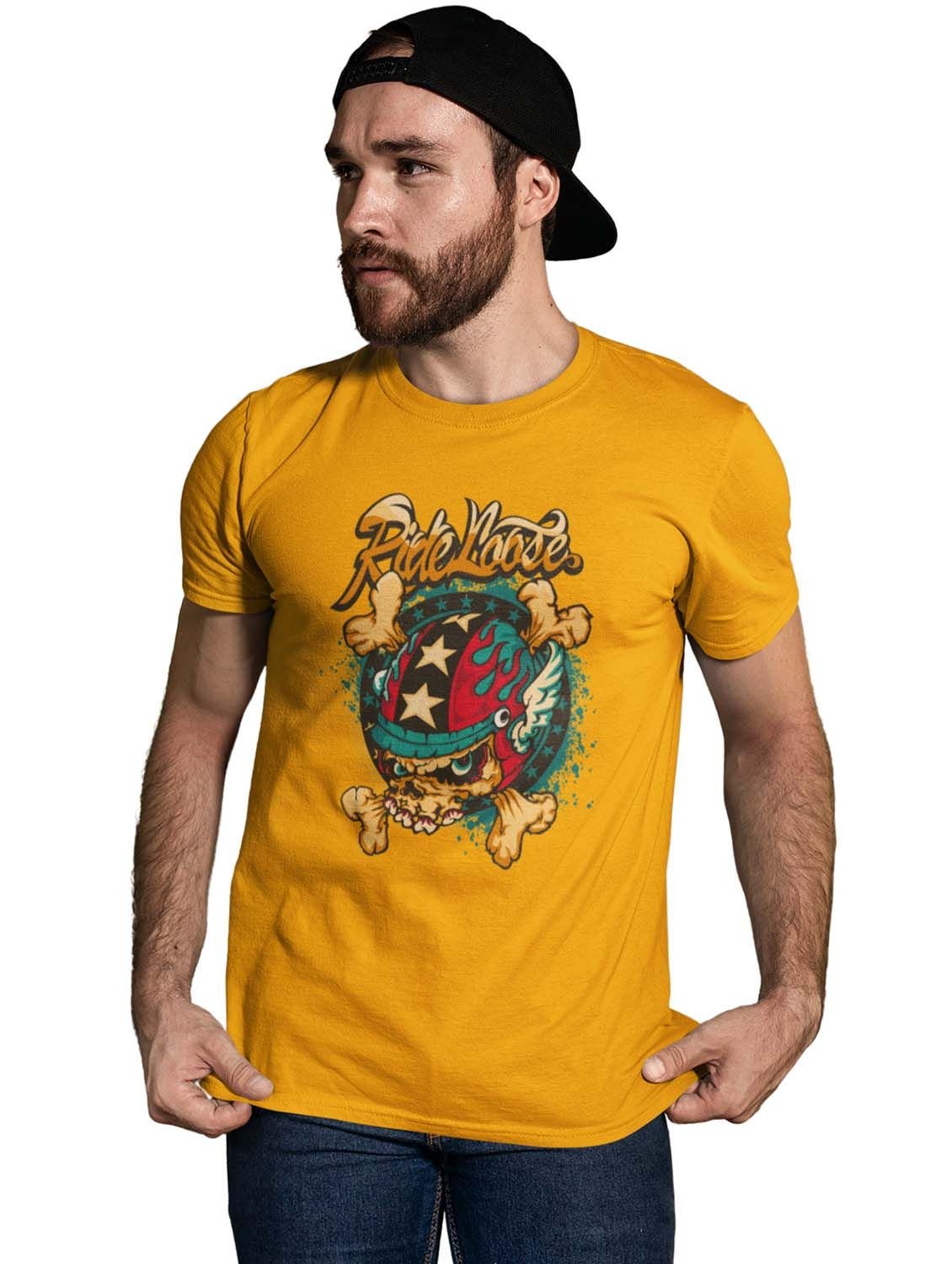Ride Loose, (BG Yellow) Yellow Round Neck Cotton Half Sleeved T-Shirt with Printed Graphics