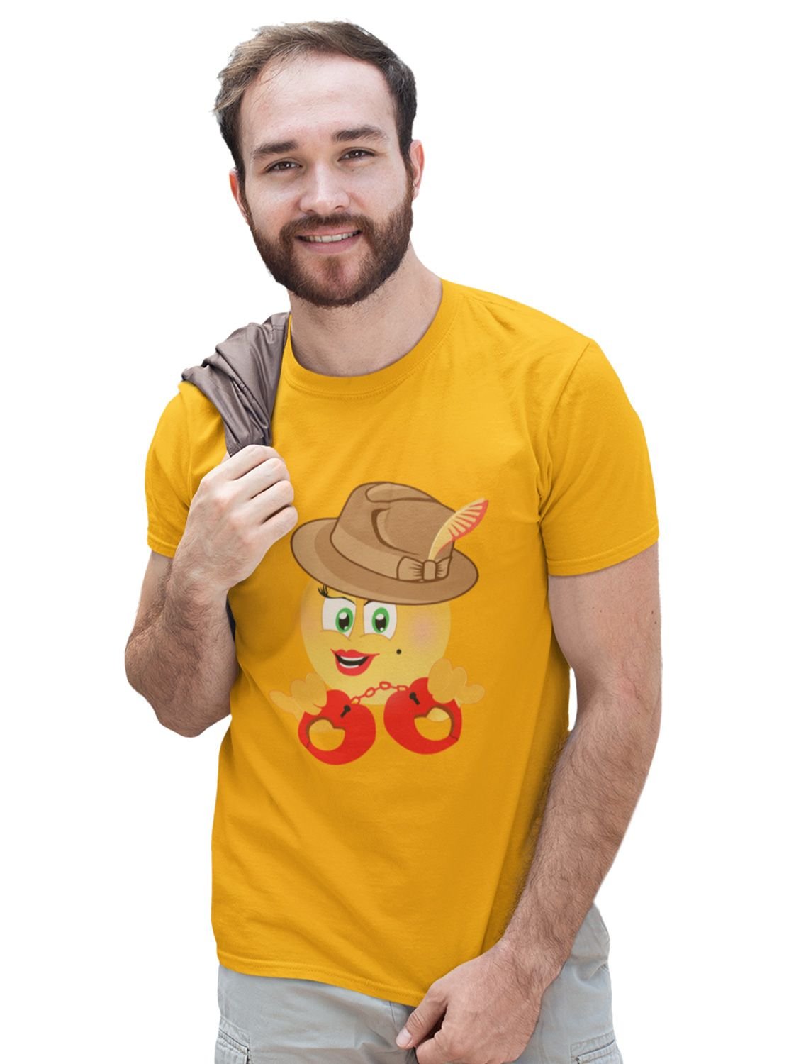 See The Handcuff Emoji Printed T-shirt (Yellow) - Clothes for Emoji Lovers - Suitable for Fun Events - Foremost Gifting Material for Your Friends and Close Ones