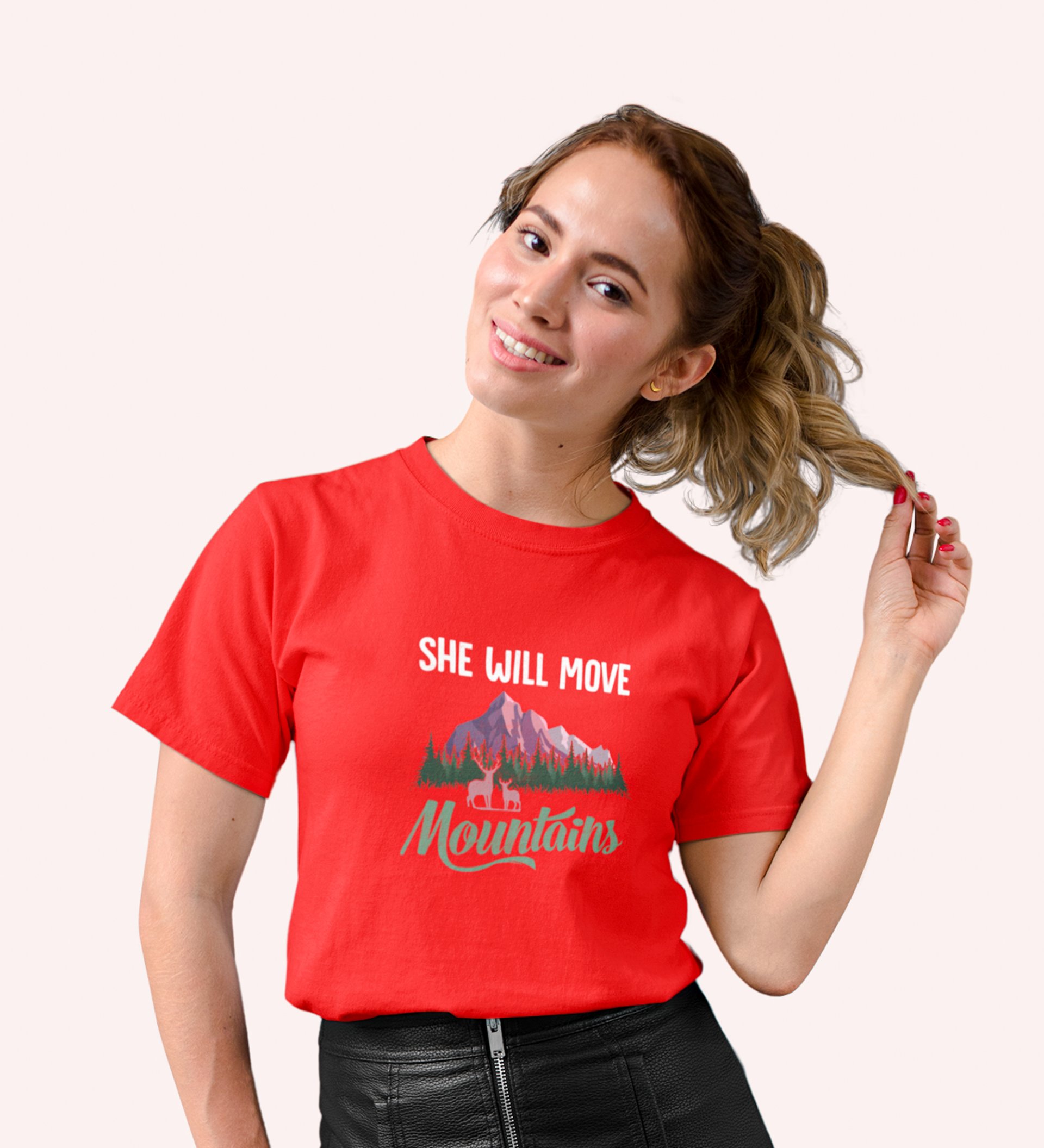 HopOfferHer Miracles Red Round Neck Cotton Half Sleeved Women's T-Shirt with Printed Graphics